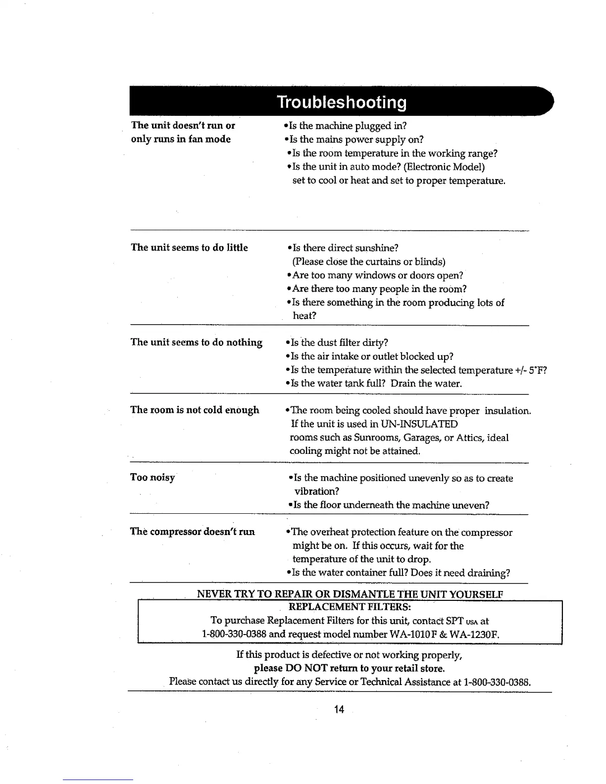 To purchase Replacement Filters for this unit, contact SPT usa at