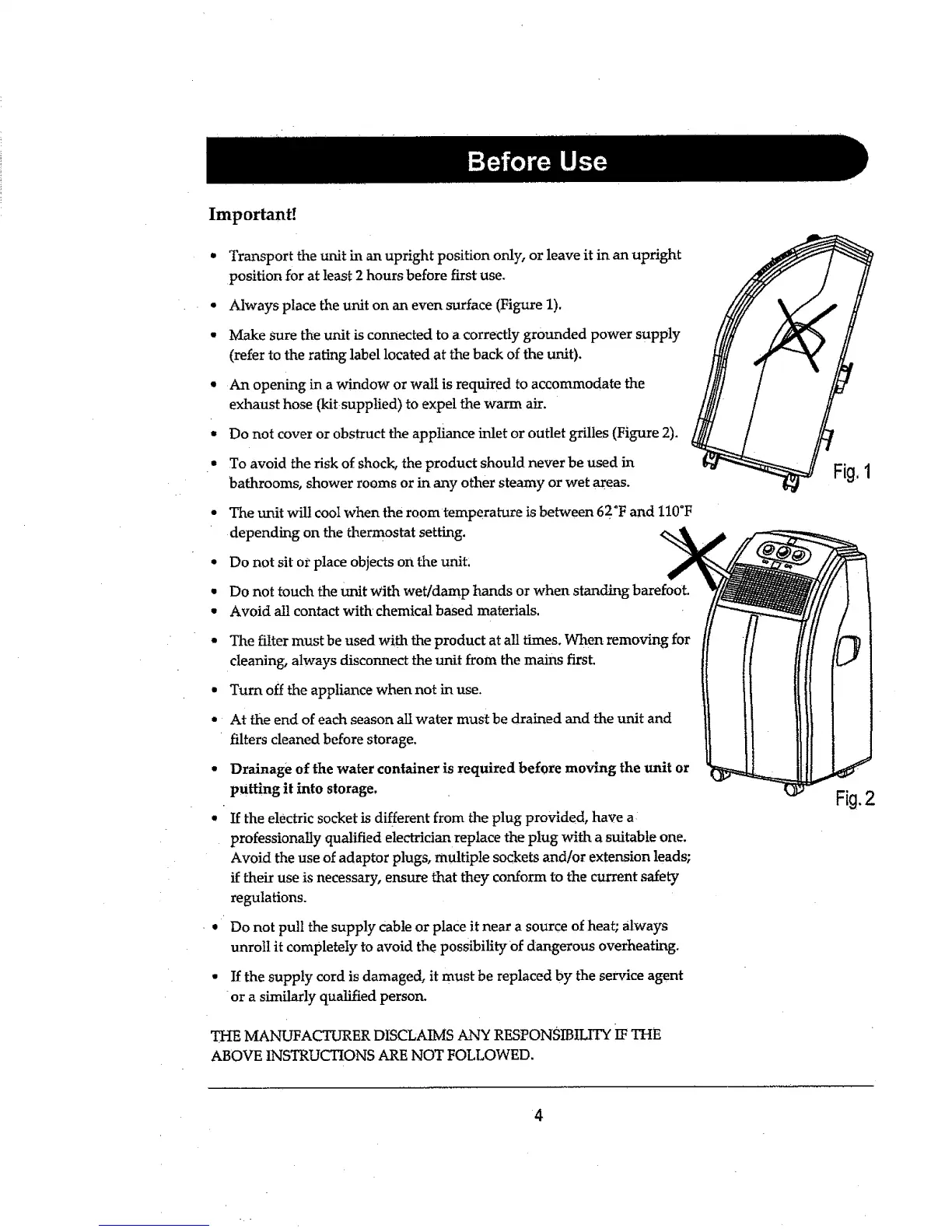 • The unit will cool when the room temperature is between 62"F and 110°F