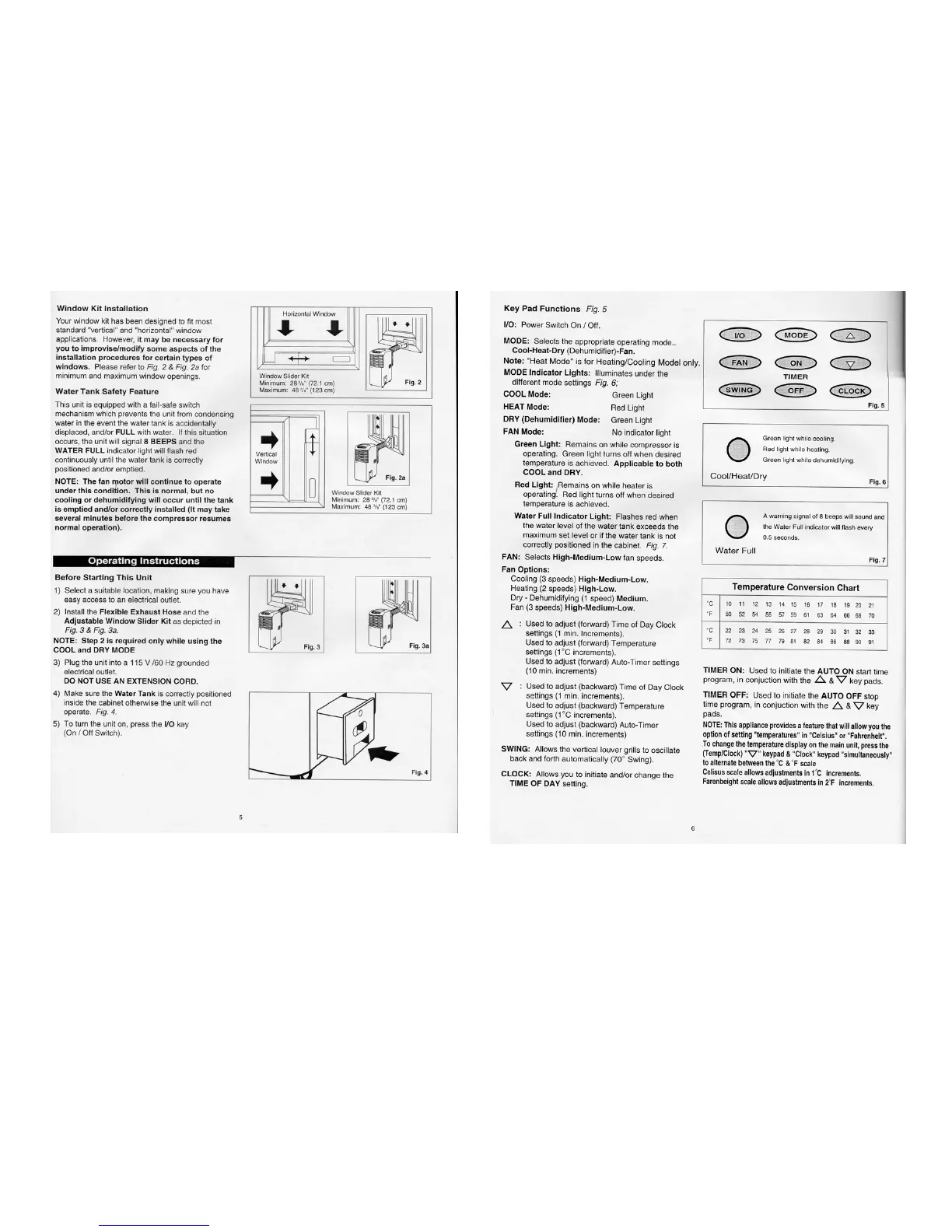 SPT WA-9000E - Water Tank Safety Feature; Water Full Indicator and Beep Signal; Operating Instructions; Key Pad Functions