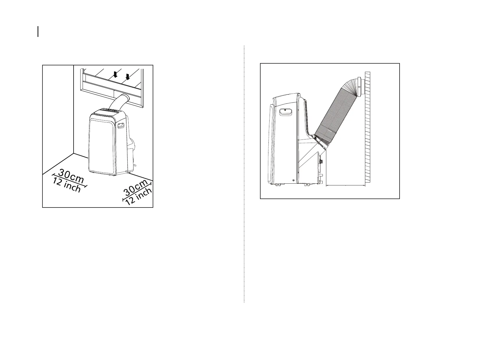 -The unit should be located at least 30cm (12”) from the nearest wall