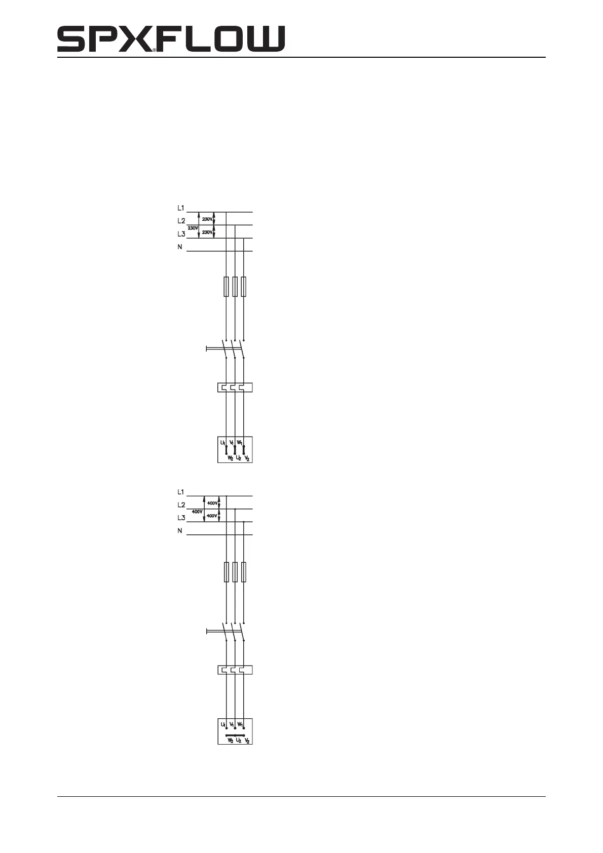 • Motor 230 V~ : 230 V. Single phase motors which are connected between the live