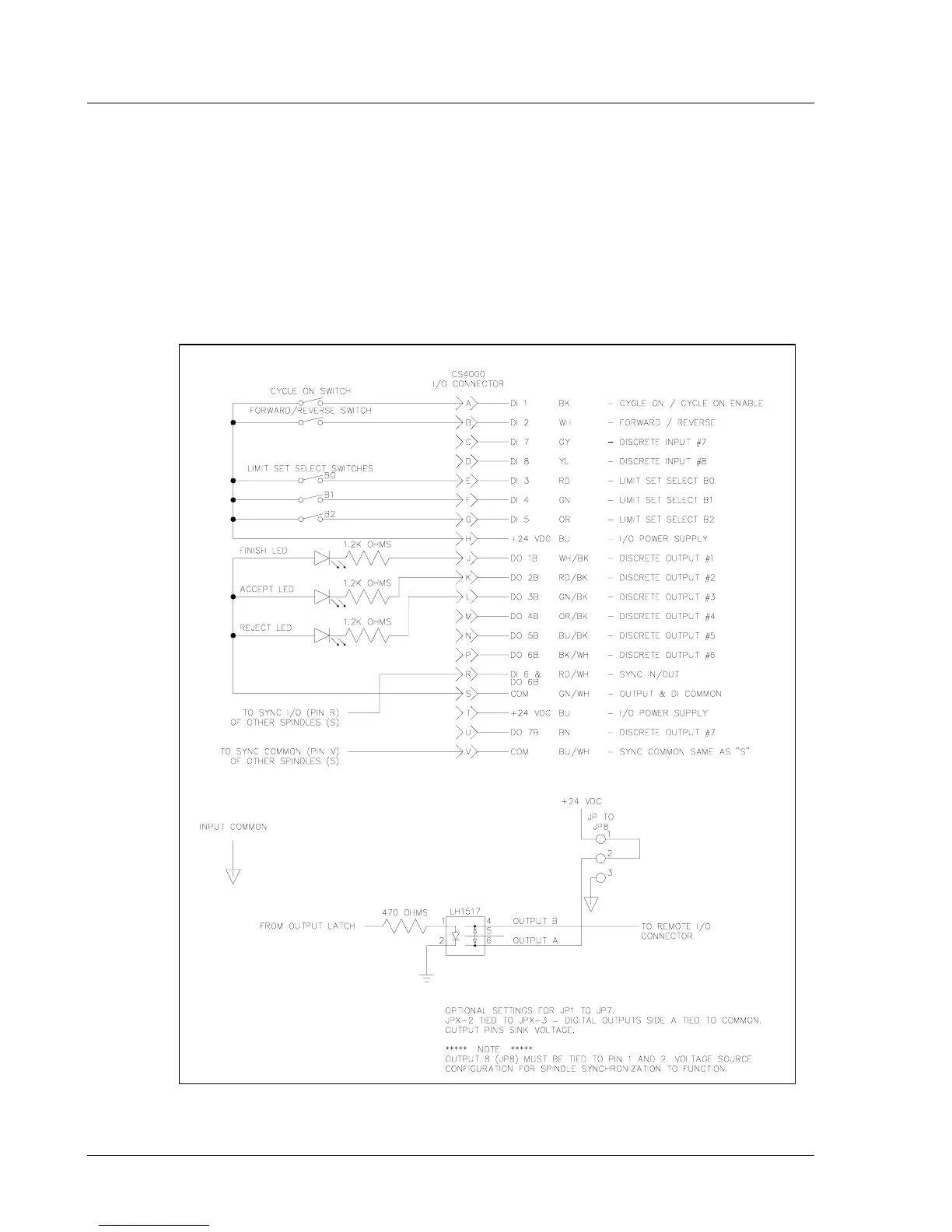NOTE: JP9 ties discrete output 8 to discrete input 6 for spindle