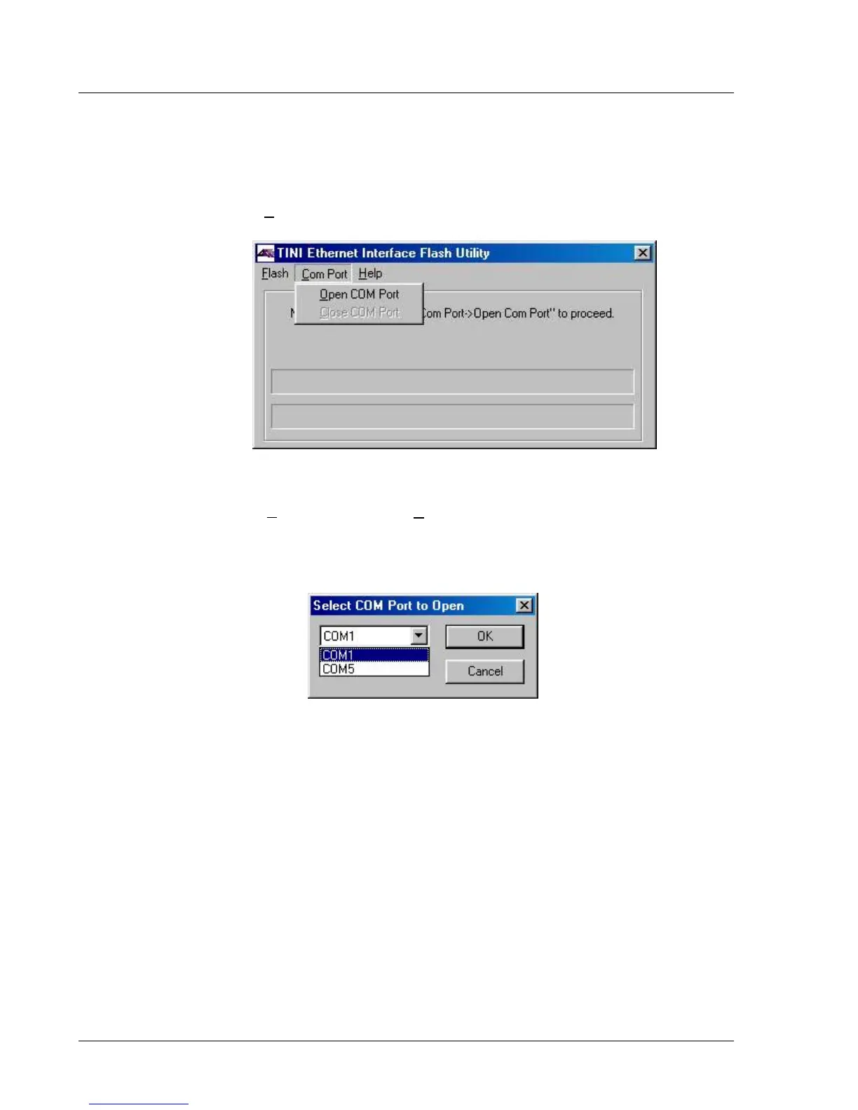 a. Click the Com Port menu in the TINI Ethernet Flash Utility window. See Figure 5-2.