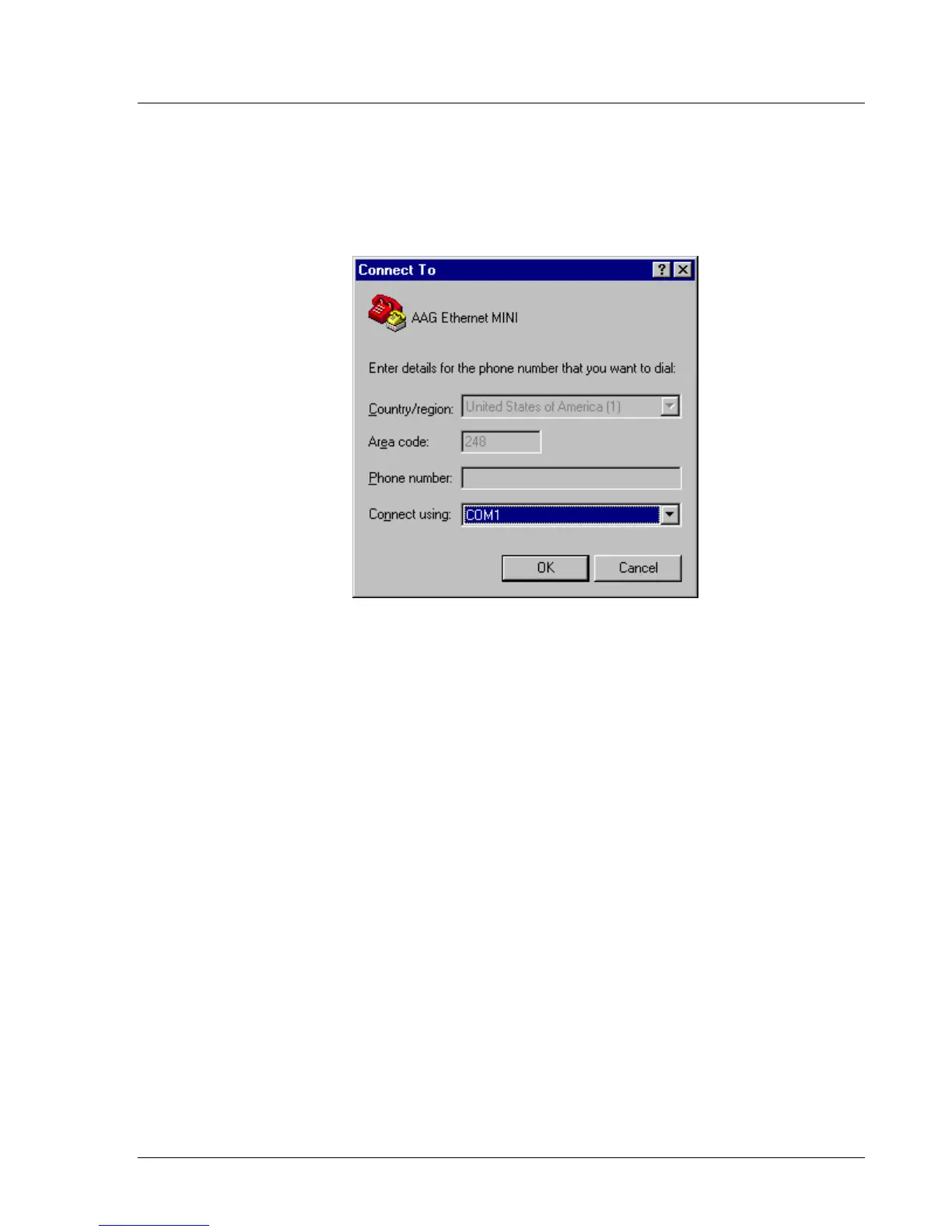 3. Select the communications port you want to use for the Hyperterminal connection.