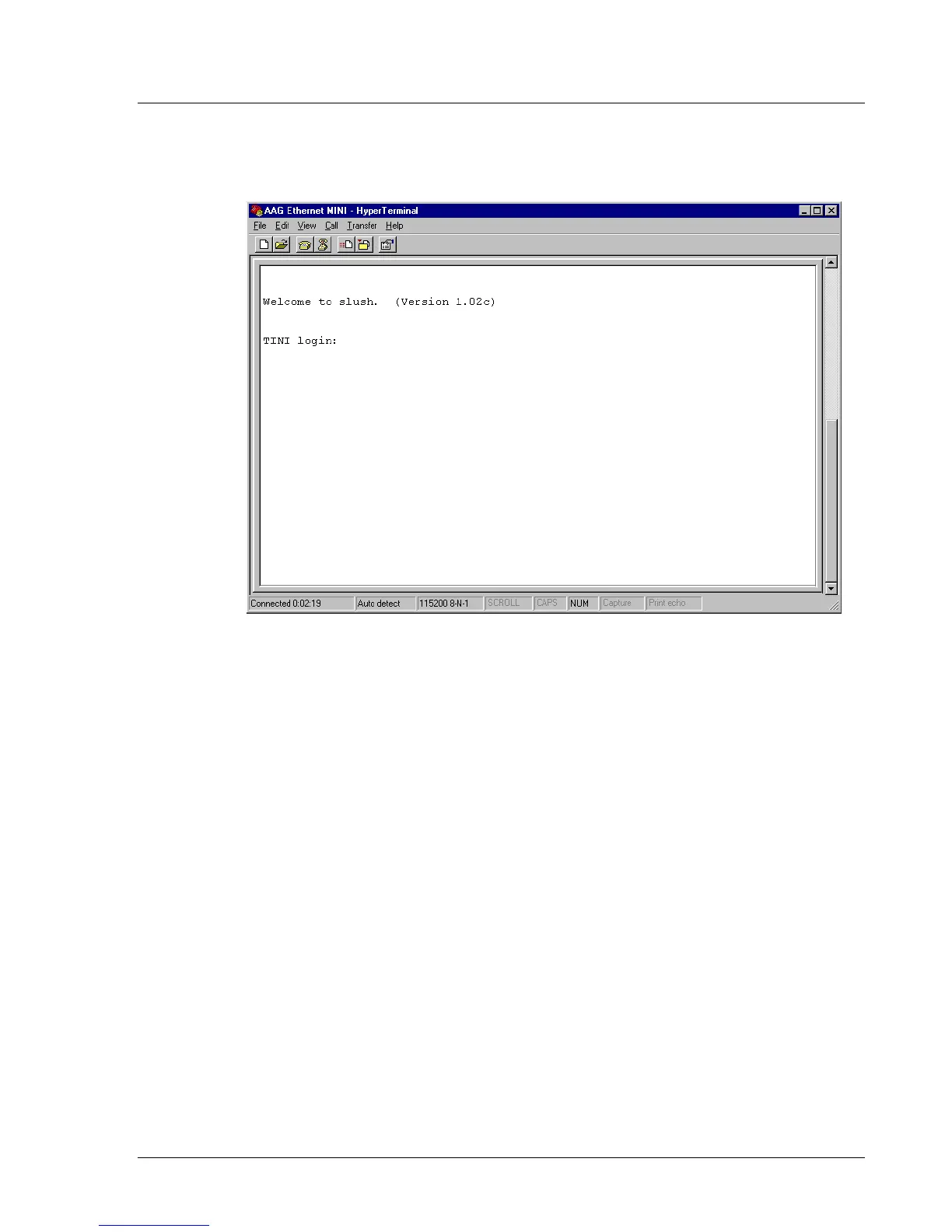 5. Hit the ENTER key on the computer keyboard to view the login prompt: ‘TINI