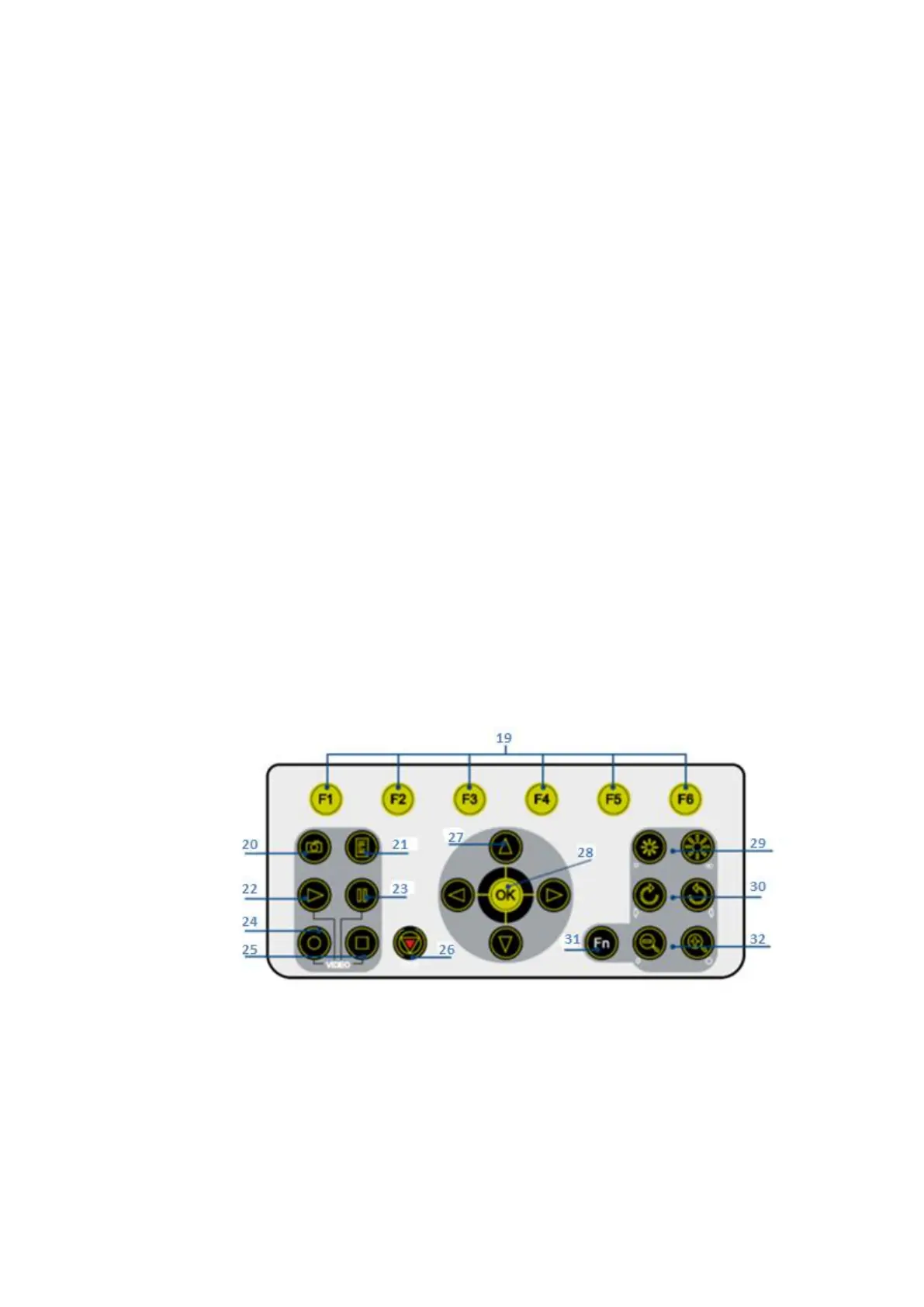 32. Zoom/Iris keys: Press to zoom in or out of the camera’s subject. Fn + Zoom to modify the Iris.