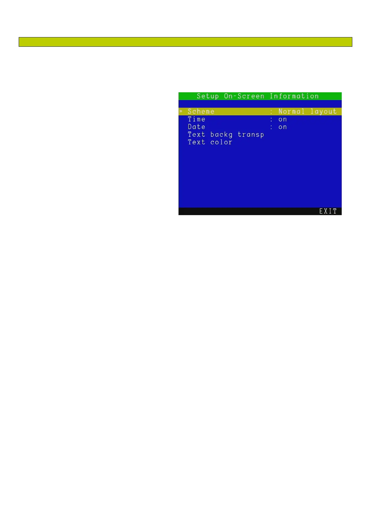 From the Setup screen enter the On-Screen Information menu, see Figure 5.10, to personalize the On-