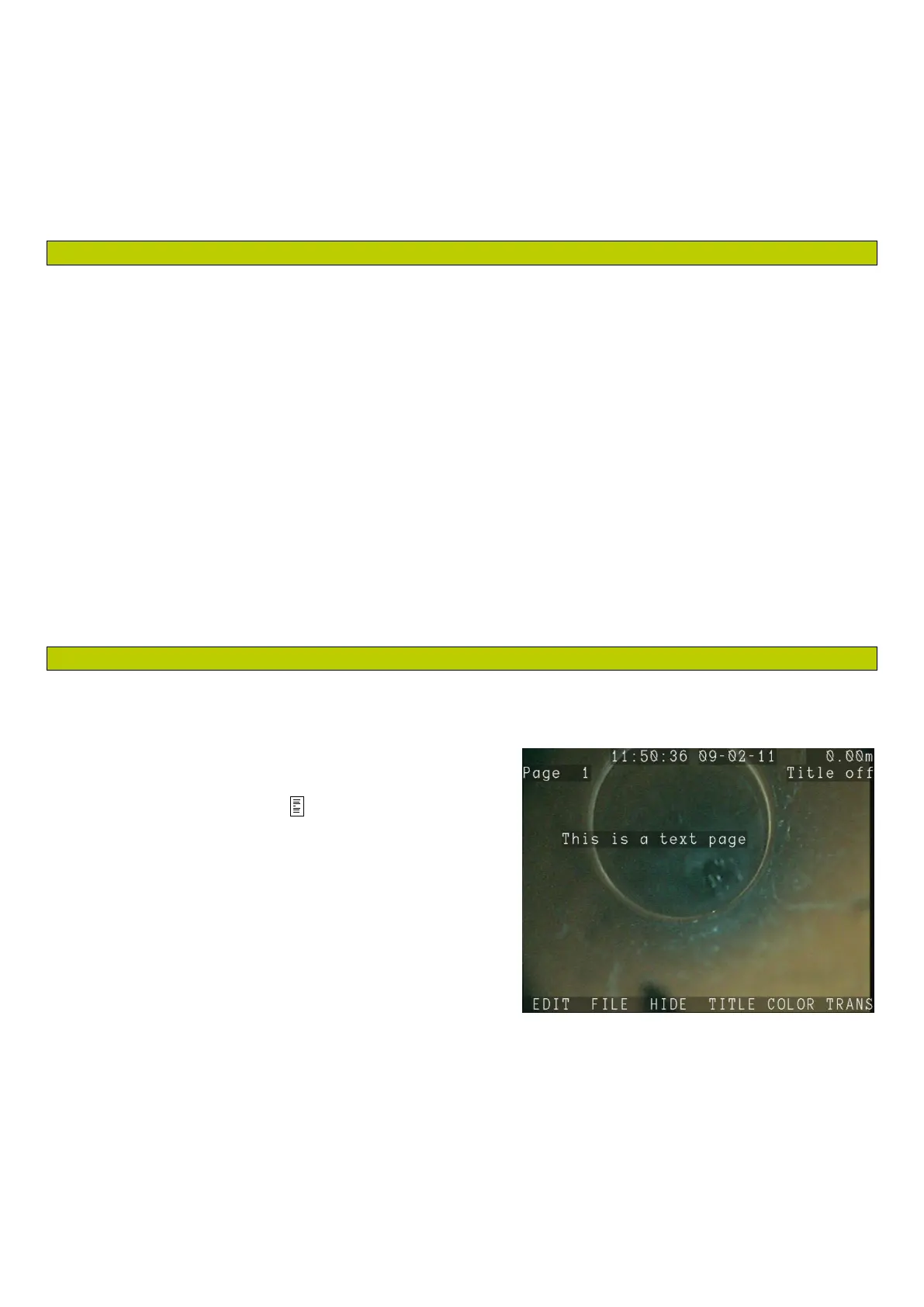 During an inspection, the user can choose to overlay a text page such as Figure 8.1 on videos or pictures
