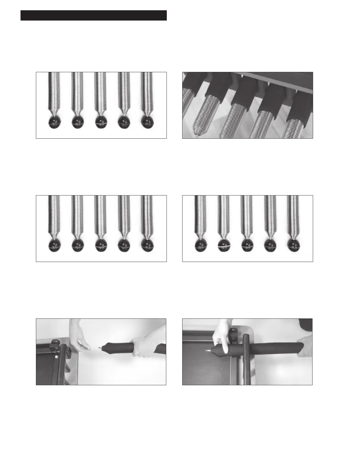 2. Start at one end of the carriage. Thread bolt end of spring #1