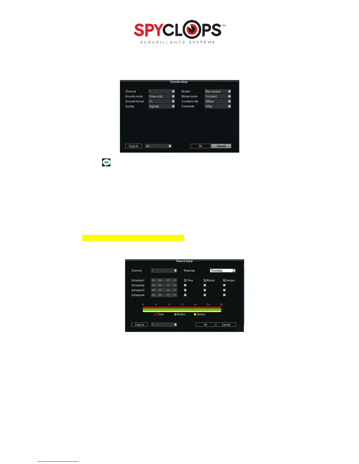 • Copy to: Select the target channel on the right. Then select “Copy to” and “OK”. The system will set the