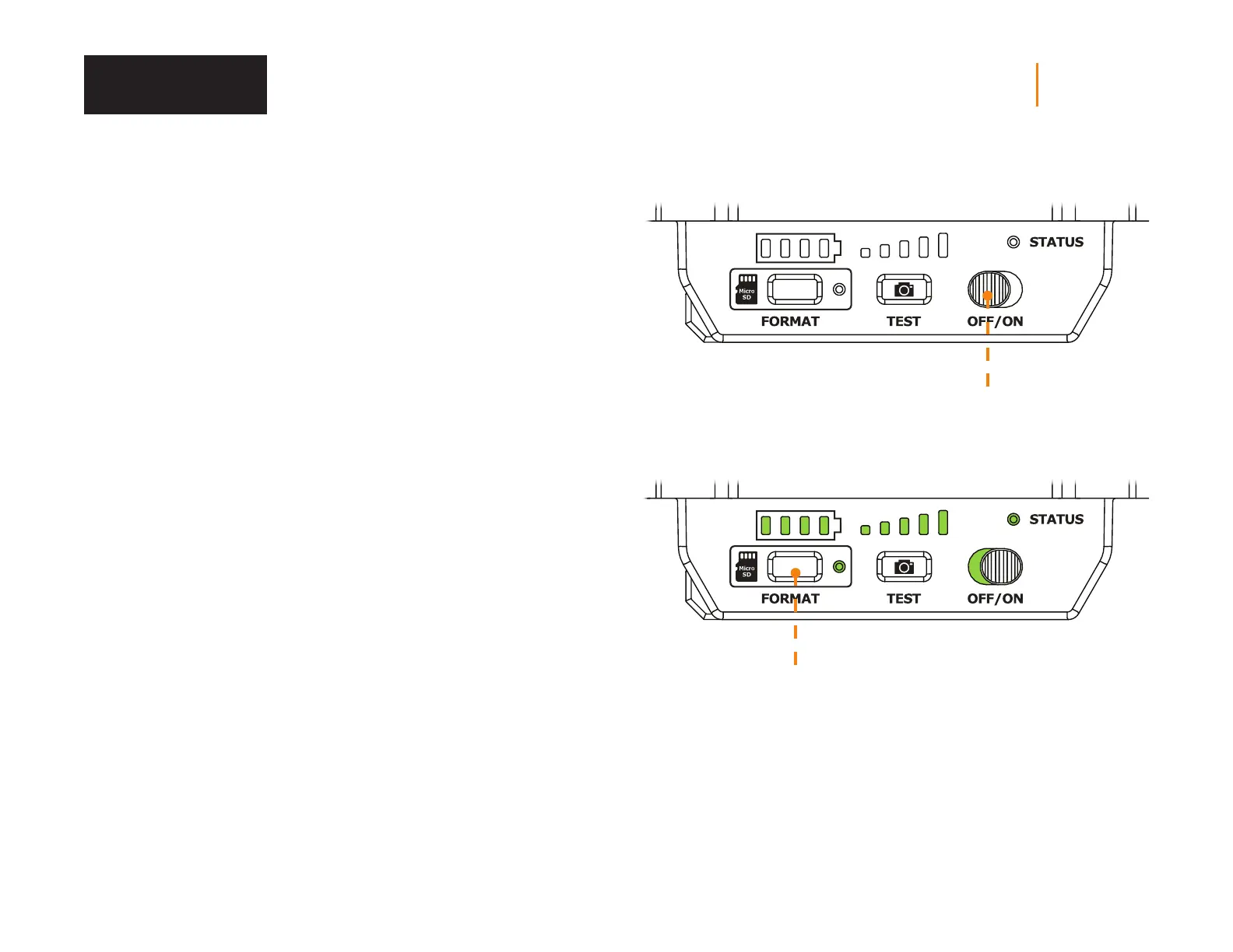 2. Press and hold the FORMAT button for 5 seconds.