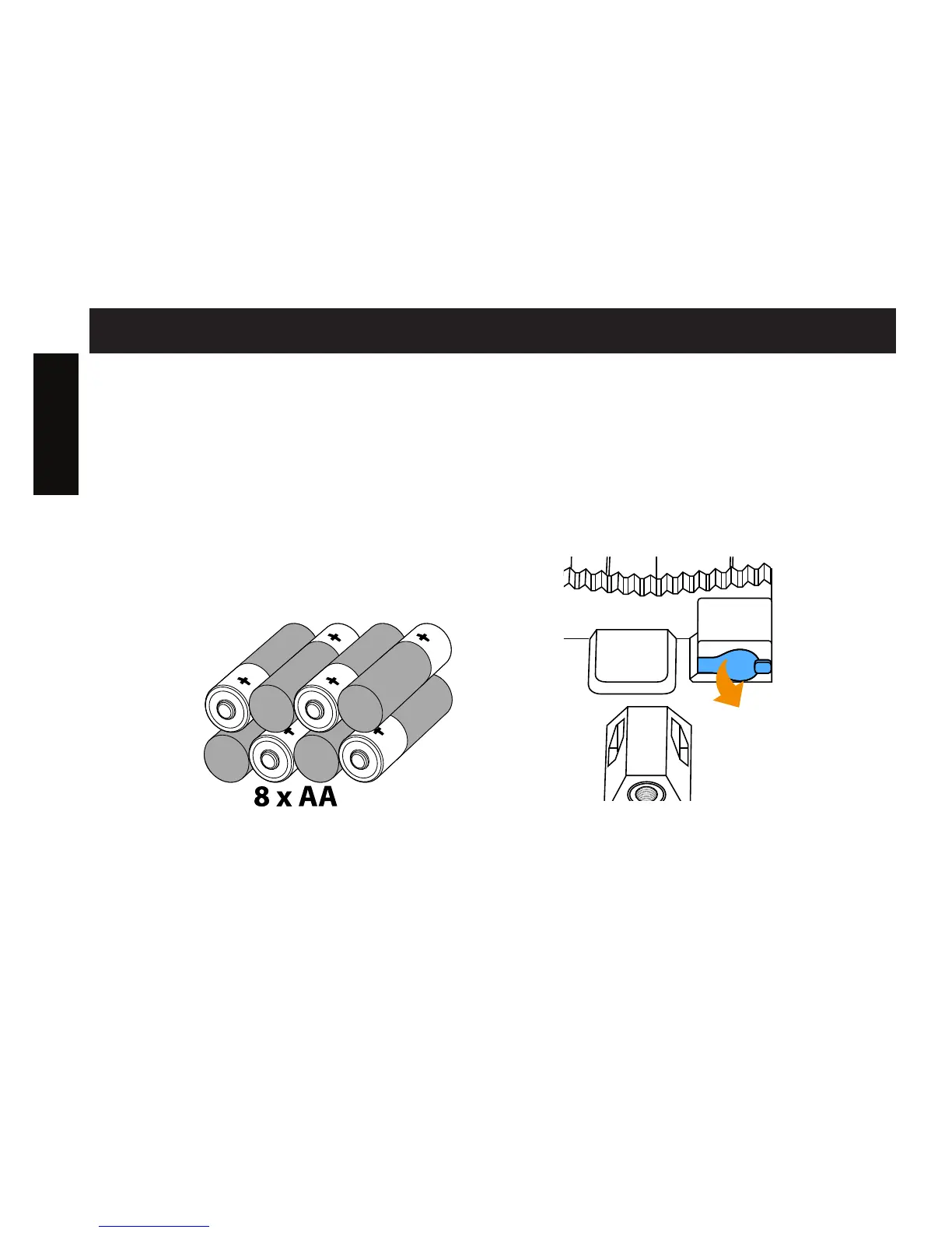 Be sure to insert the AA batteries according to the polarity indications (+) and (-).