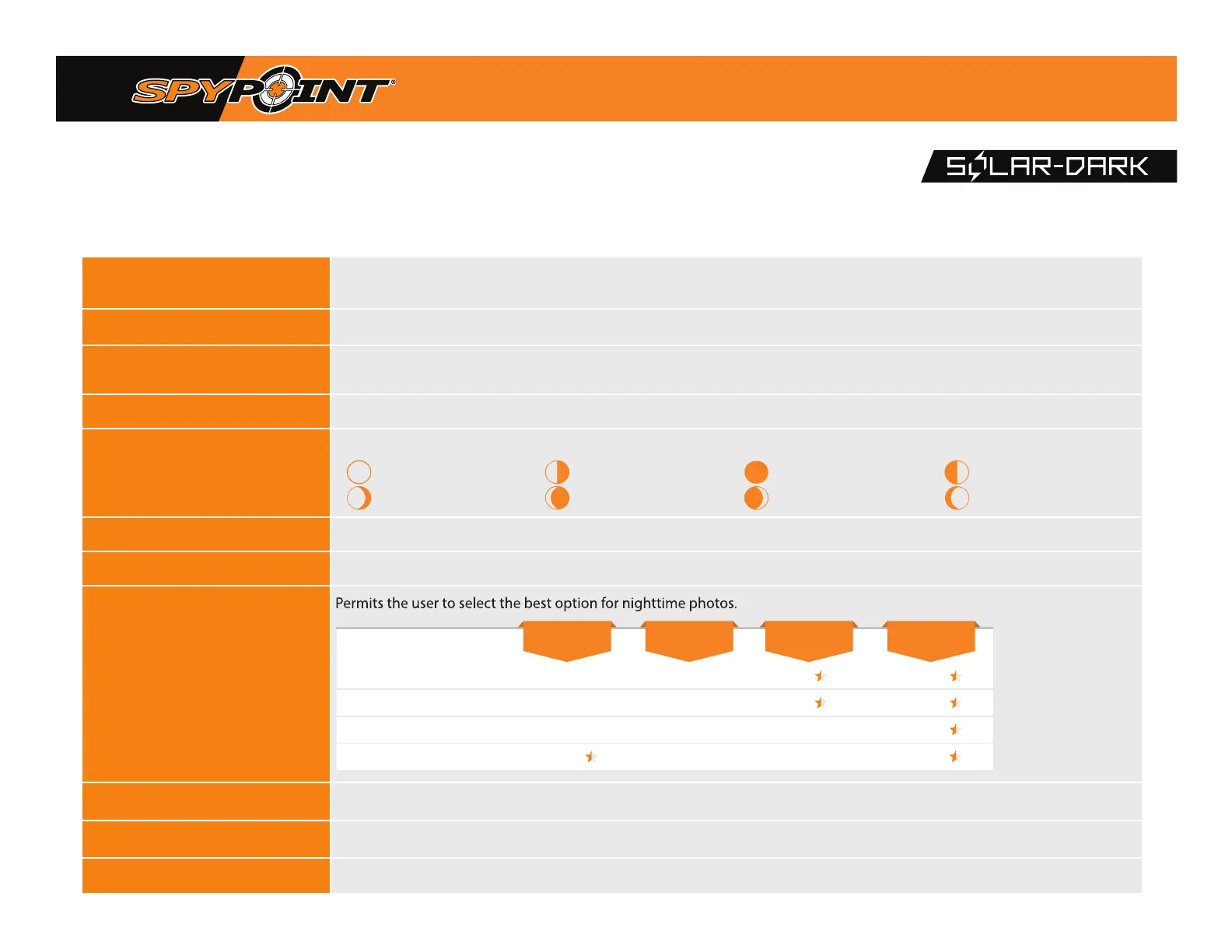 Displays the date, time, temperature, moon phase, SPYPOINT logo, and camera model on each photo.