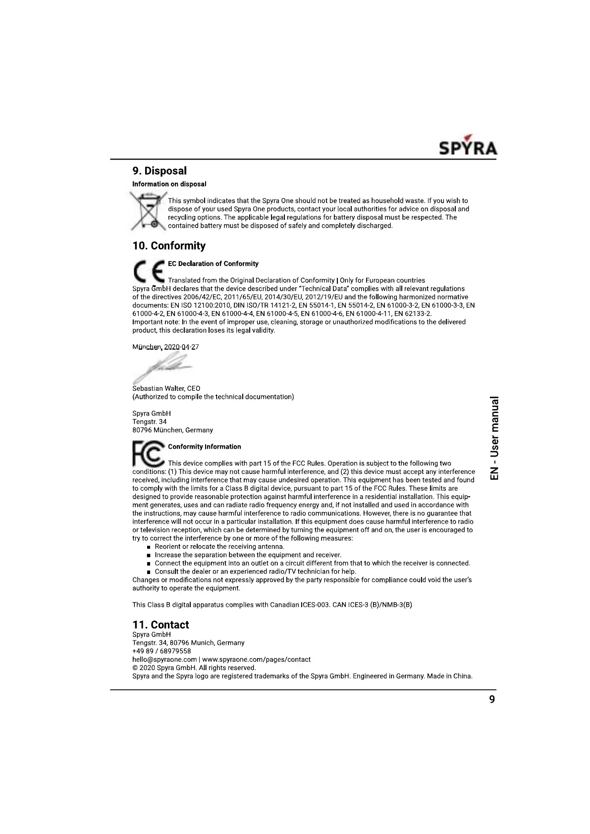 SPYRA One - End-of-Life and Support; Disposal and Compliance; Contact Information