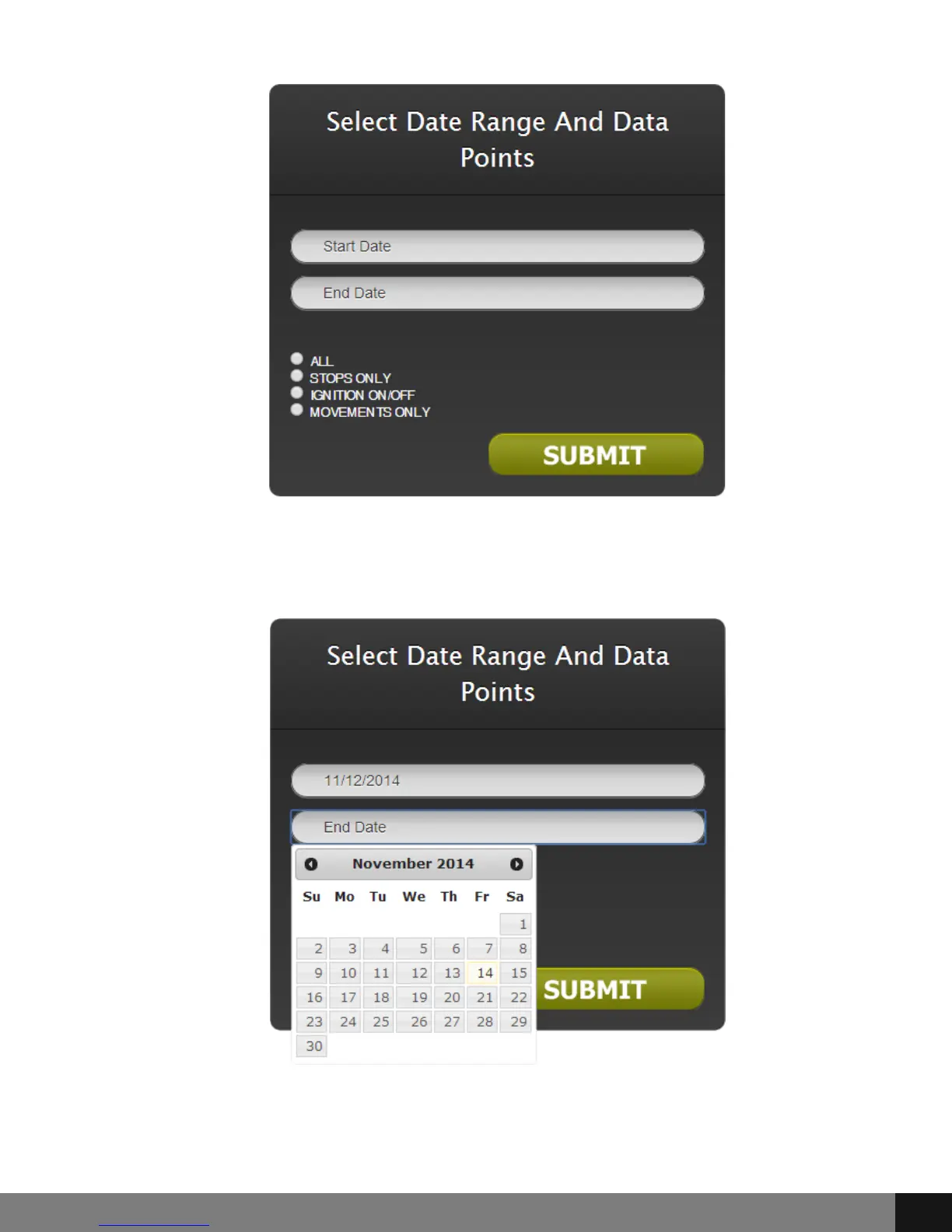 When selecting Date Ranges, a pop up calendar will appear. Click on the start