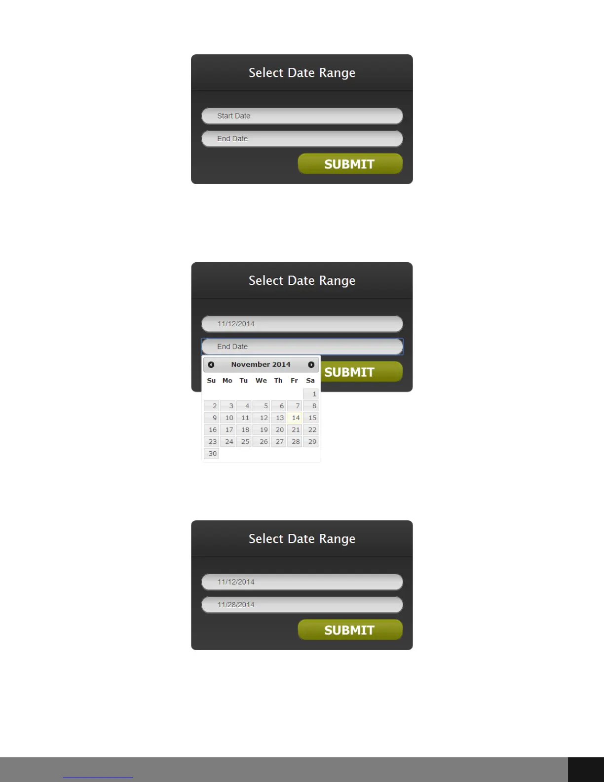 When clicking in the Start and End Date fields, a pop up calendar will appear
