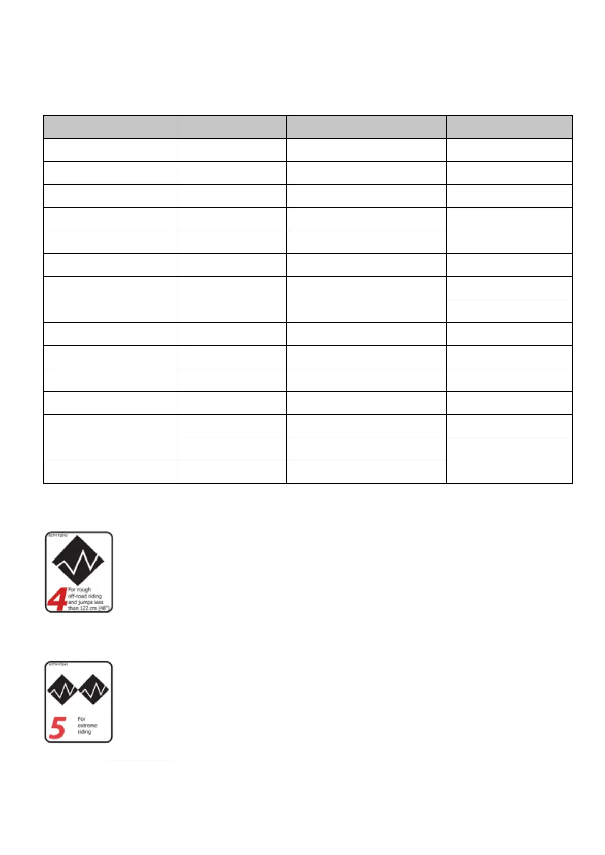 in categories 1, 2, 3 and 4, can also be used for extreme jumps and downhills in rough terrain at speeds above 40