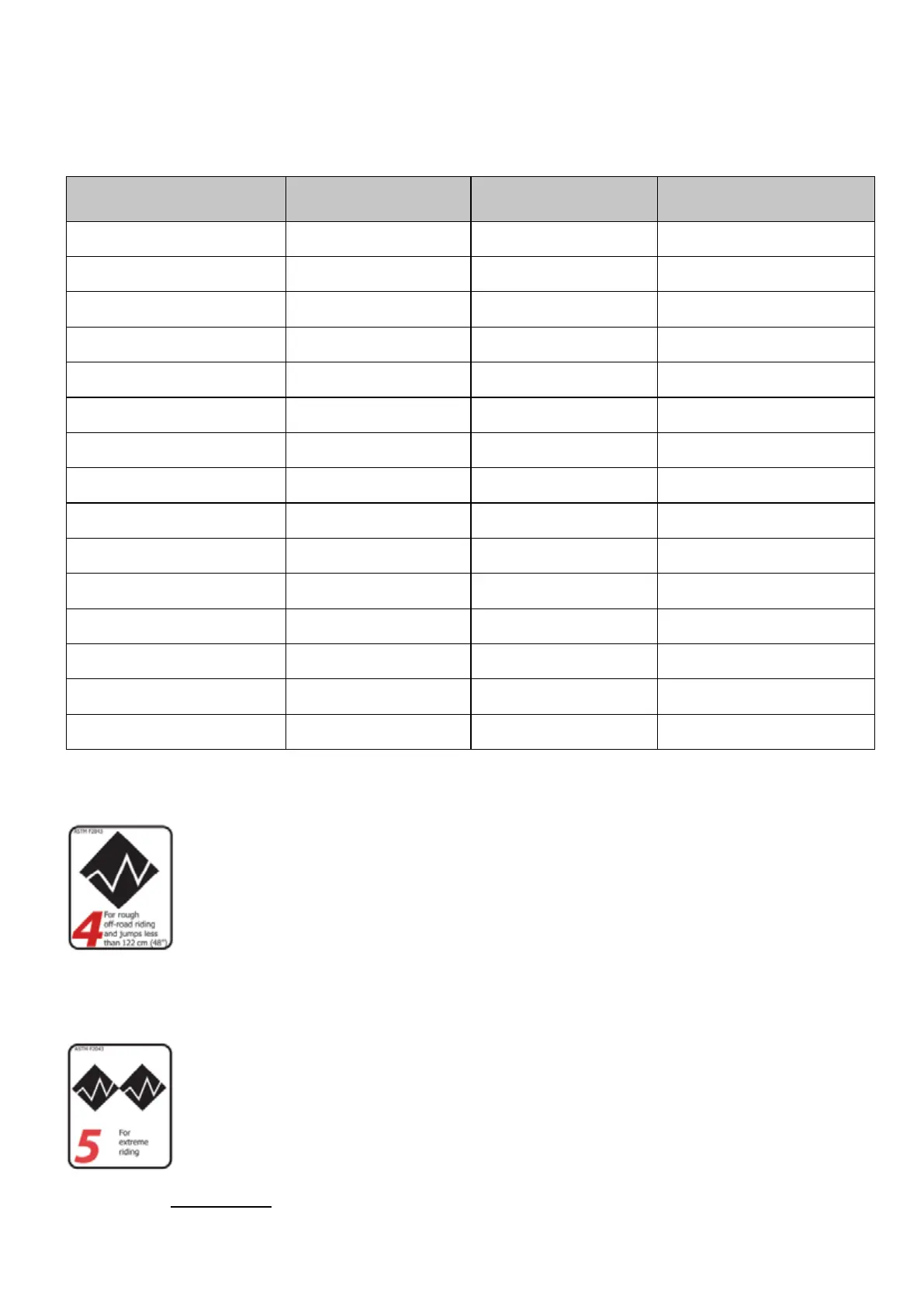 form ASTM F2043-13. Houd er rekening mee dat het bij categorie 5 om een gevaarlijke risicosport gaat, waarbij ets en zijn onderdelen