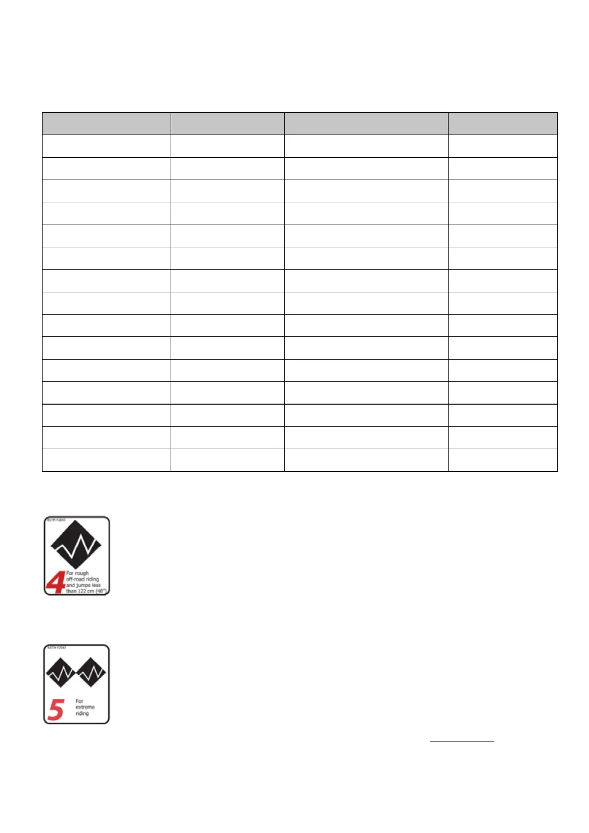 des catégories 1, 2, 3 et 4, ainsi que pour des sauts extrêmes et des descentes sur des terrains accidentés à une