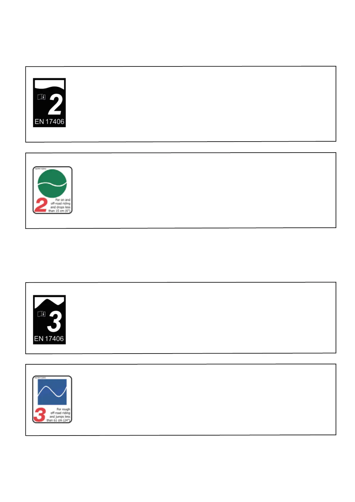 les catégories 1 et 2, pour des sentiers irréguliers, des terrains accidentés et les voies diciles, qui nécessitent