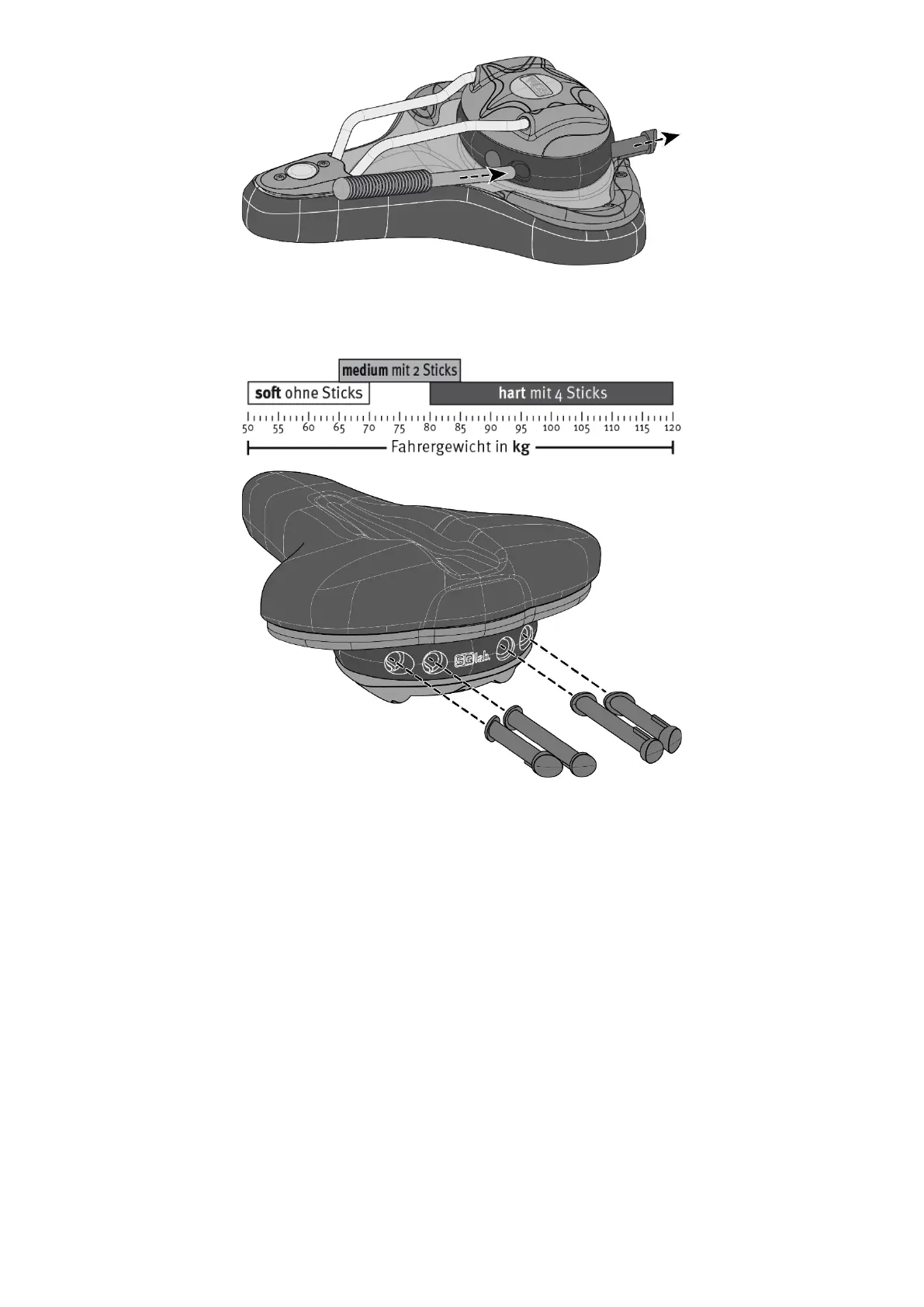 Heben Sie die Sticks gut auf, falls Sie den Sattel zu einem späteren Zeitpunkt doch wieder mit den Dämpfungssticks fahren möchten.