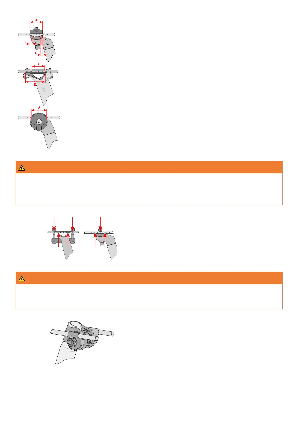 d'au moins 32 mm. La longueur minimale "B" et "C" de chaque surface de serrage