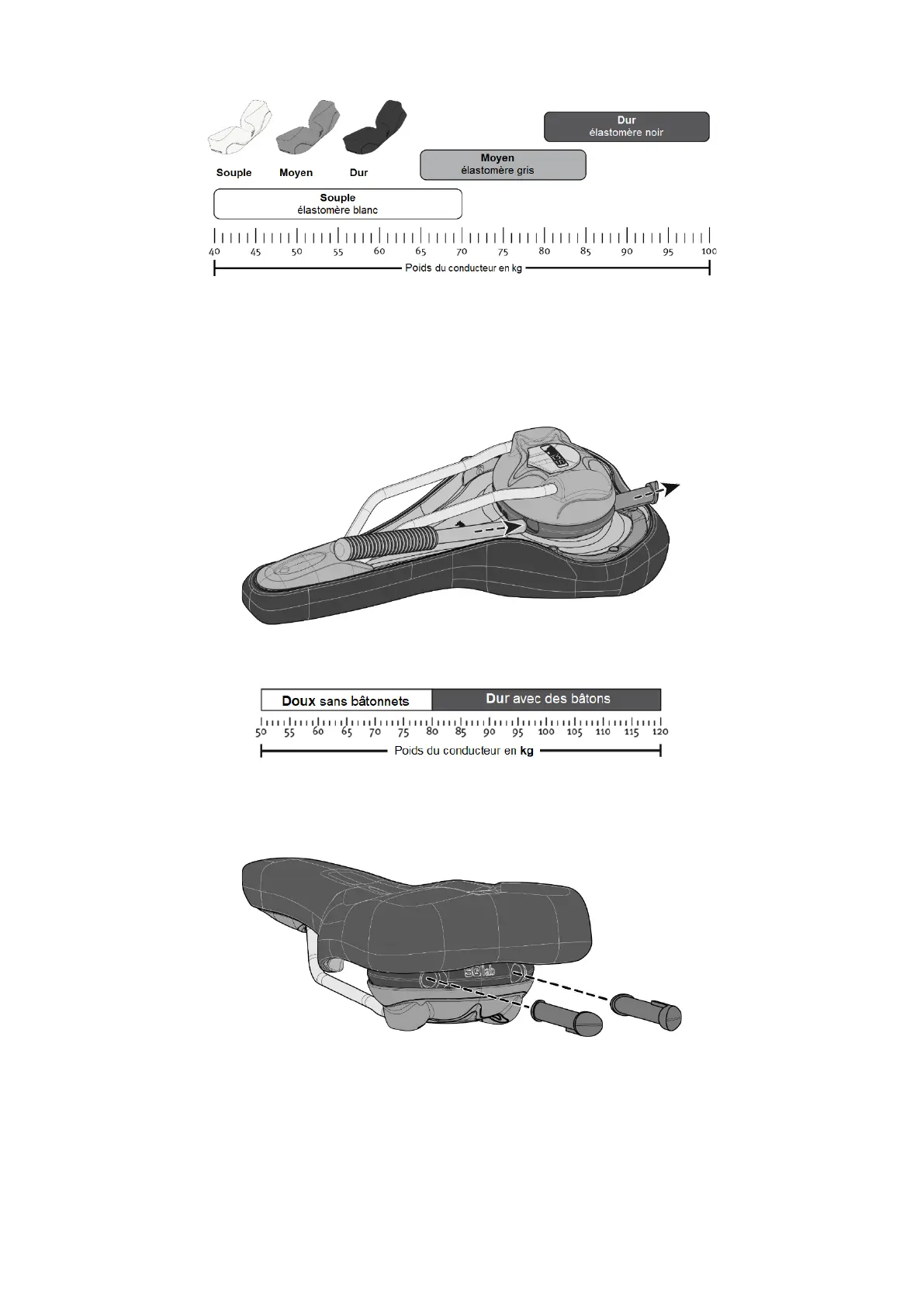 Les élastomères ne sont pas vissés ou collés, mais seulement serrés et peuvent être retirés à la main vers l'arrière. Pour faciliter le