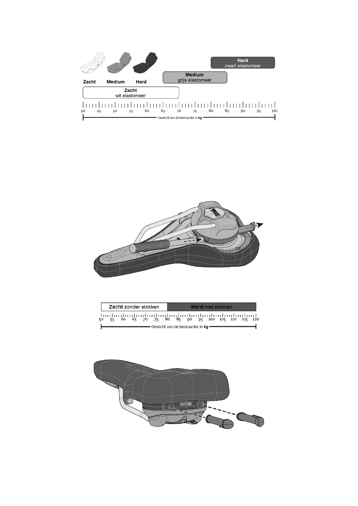 Bewaar de stokjes voor het geval u het zadel met de dempingsstokjes op een later tijdstip opnieuw wilt berijden.