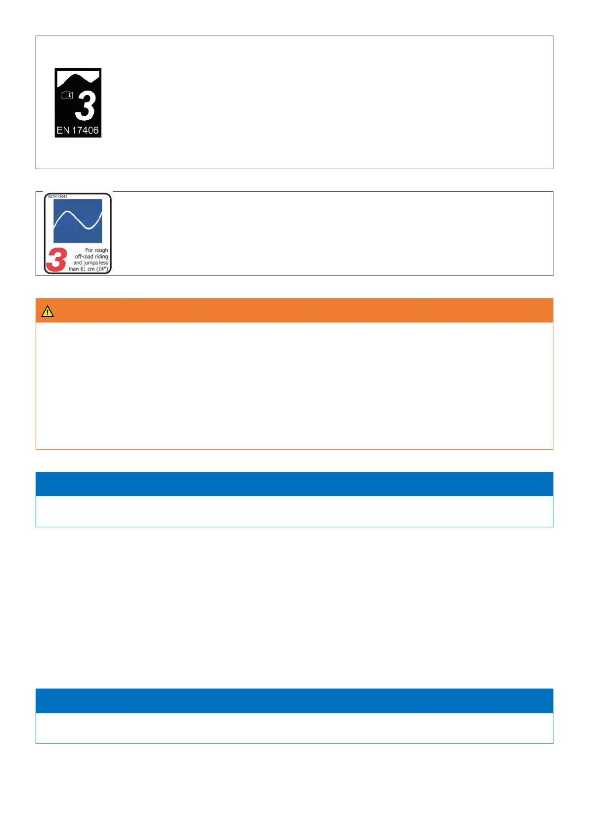 • Setzen Sie Ihren Sattel nur in der vorgesehenen oder in einer niedrigeren Einsatzkategorie (nach ASTM F2043-13/ DIN EN