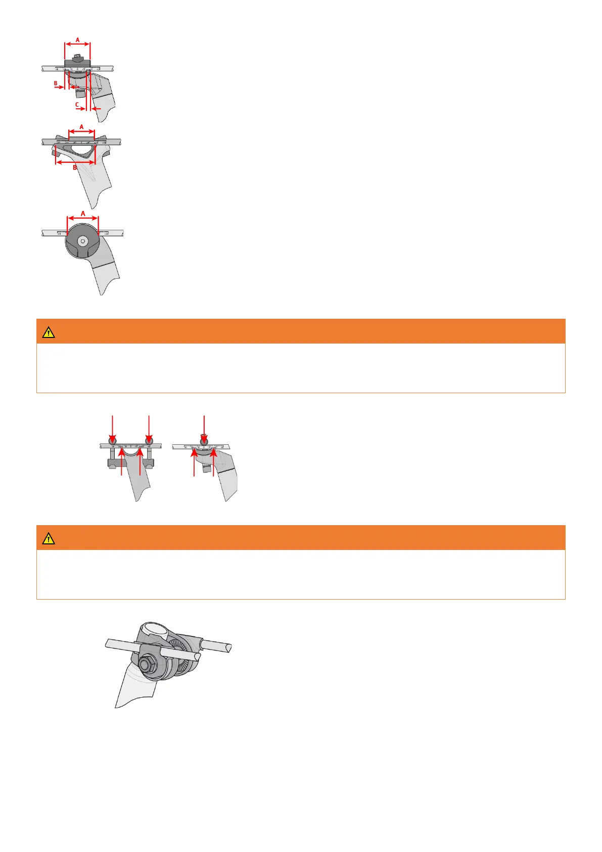 Die Klemmung der Streben muss wenigstens eine Länge „A“ (oder Stützabstand)