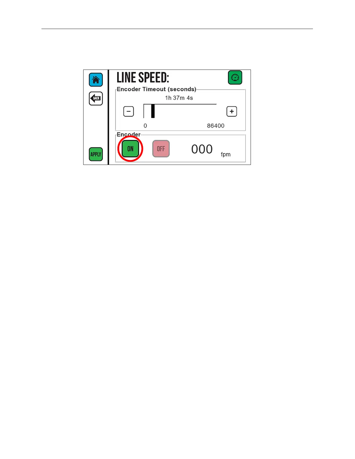 To use an Encoder to control line speed, select ON.
