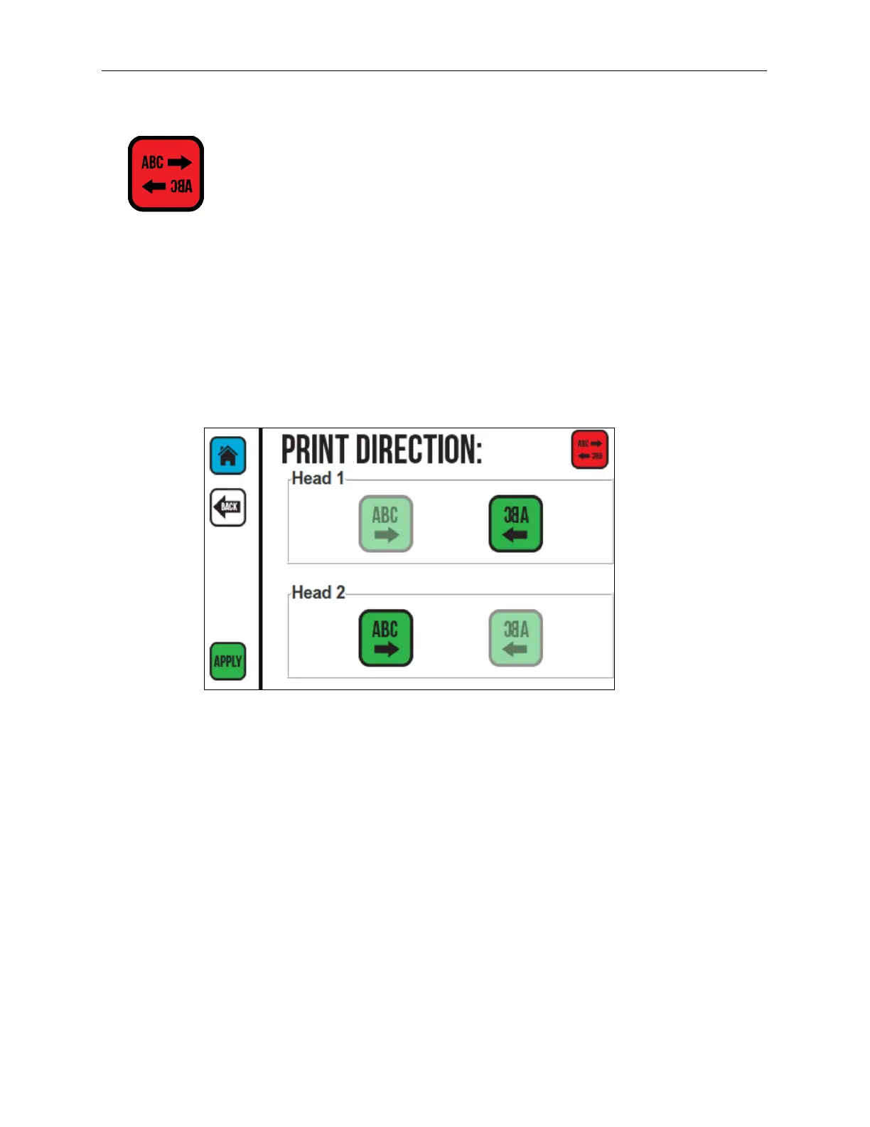 2. Select APPLY to set the print direction. Select BACK to return to the previous