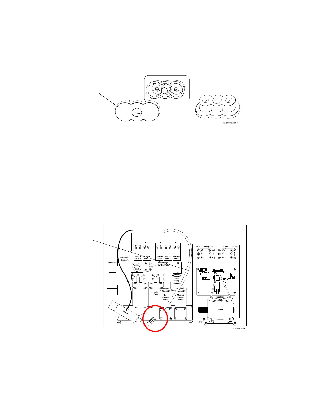 c. Replace the Nozzle Plugs over the Ink and Makeup Nozzles by gently sliding the