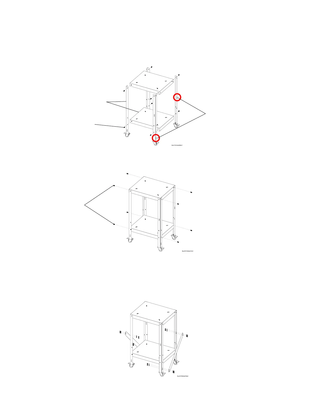 a. Use 8 of the M6-12 screws to attach the sides of the legs to the sides of the shelves.