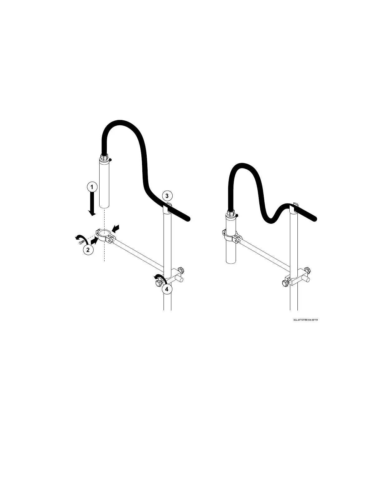 4. When the clamps are halfway up the length of the Printhead, secure them around the