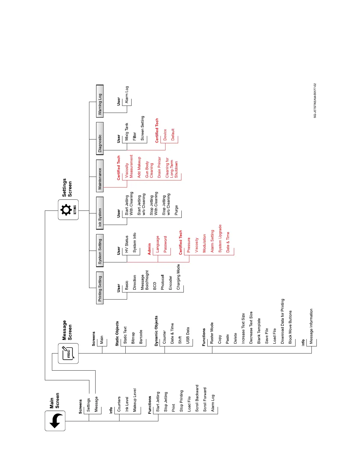 functions are accessed through the Main Screen, Message Screen, or Settings Screen.