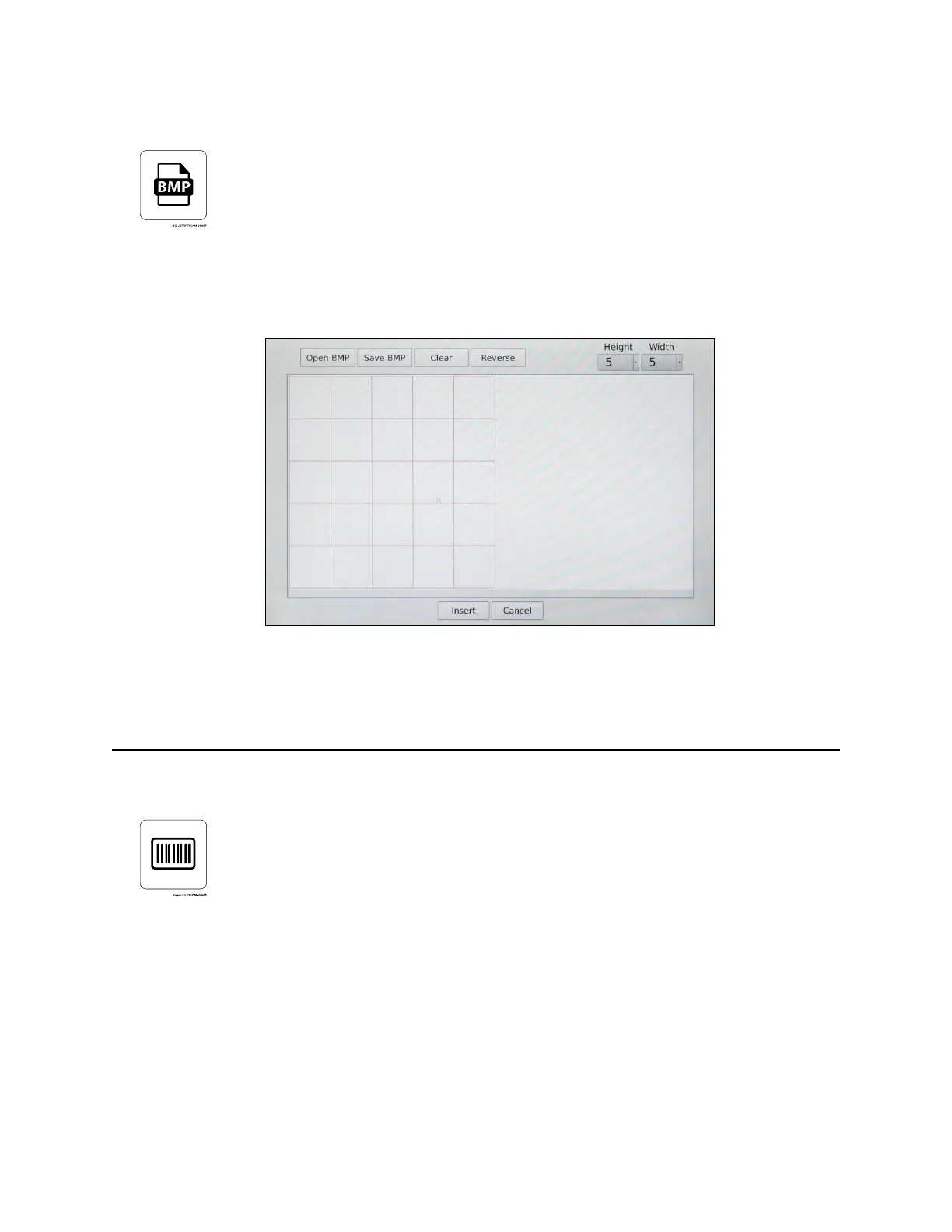 This button inserts a barcode into the Message Area. The letters or numbers to create the