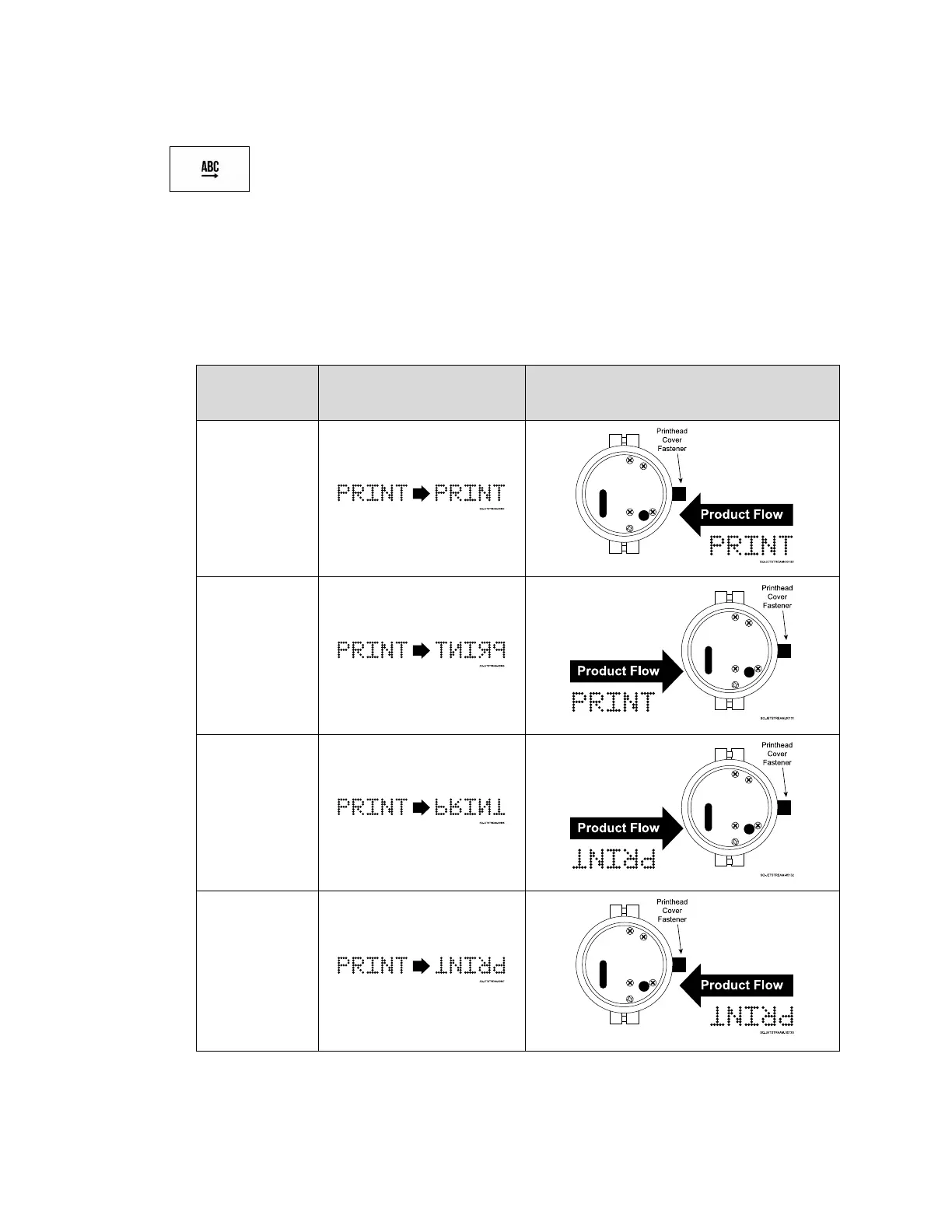 Printhead to create the desired message. If the product flow is left-to-right, the