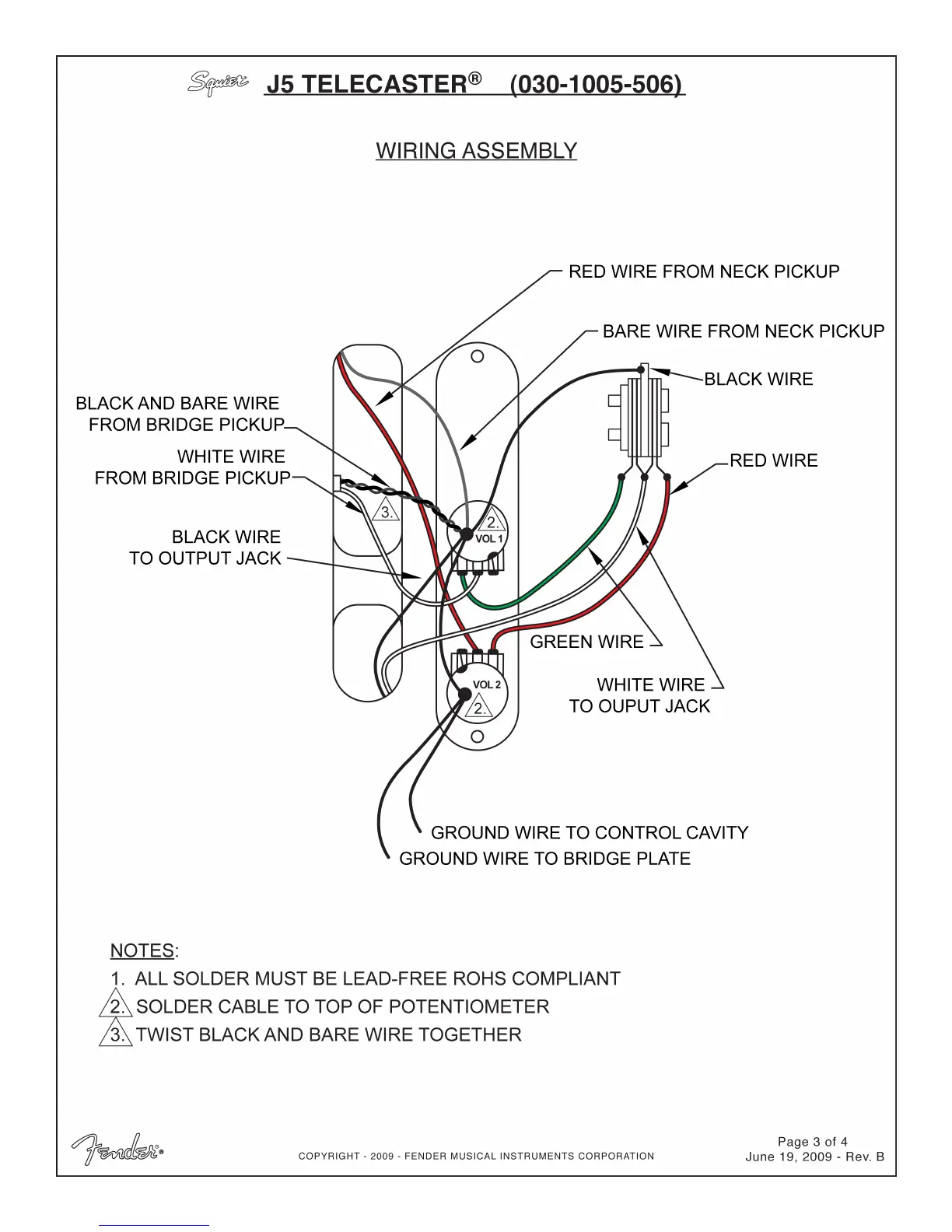 Squier J5 Telecaster - Wiring Assembly Details; Pickup Wiring; Output Jack Connection; Grounding