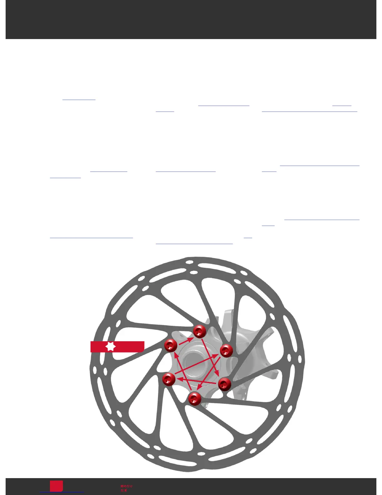 交替拧紧每个刹车碟螺栓,每次旋转一整圈,