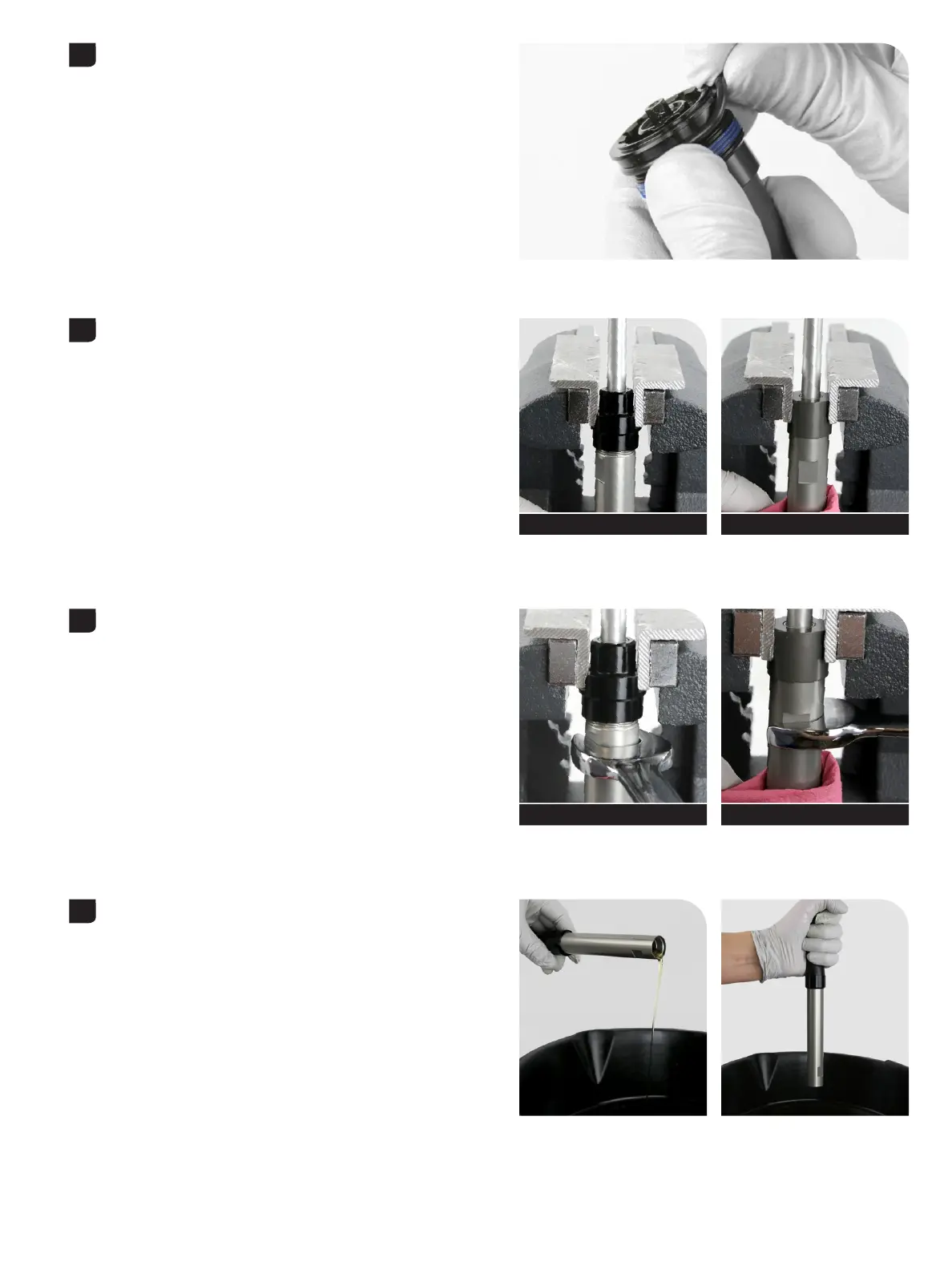 Remove the cartridge tube from the vise and pour the oil into an Remove the cartridge tube from the vise and pour the oil into an