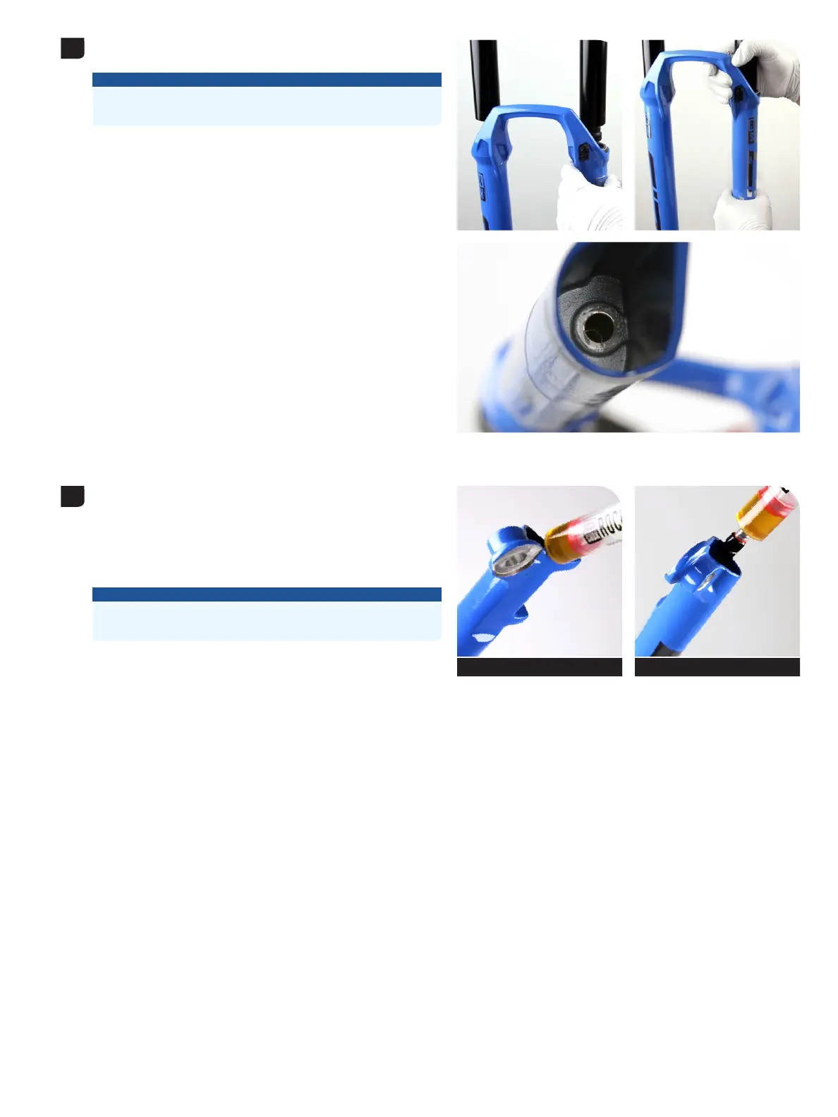 Angle a syringe fitting in each lower leg bolt hole so the fluid will only Angle a syringe fitting in each lower leg bolt hole so the fluid will only