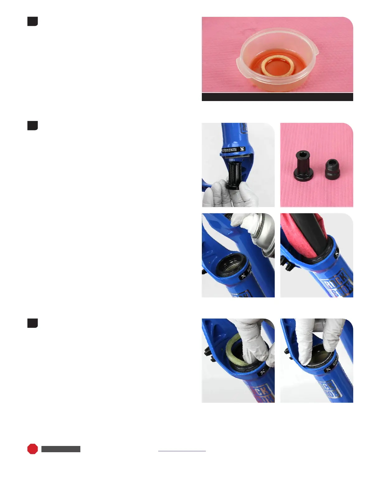Soak the foam rings in suspension oil. Soak the foam rings in suspension oil.