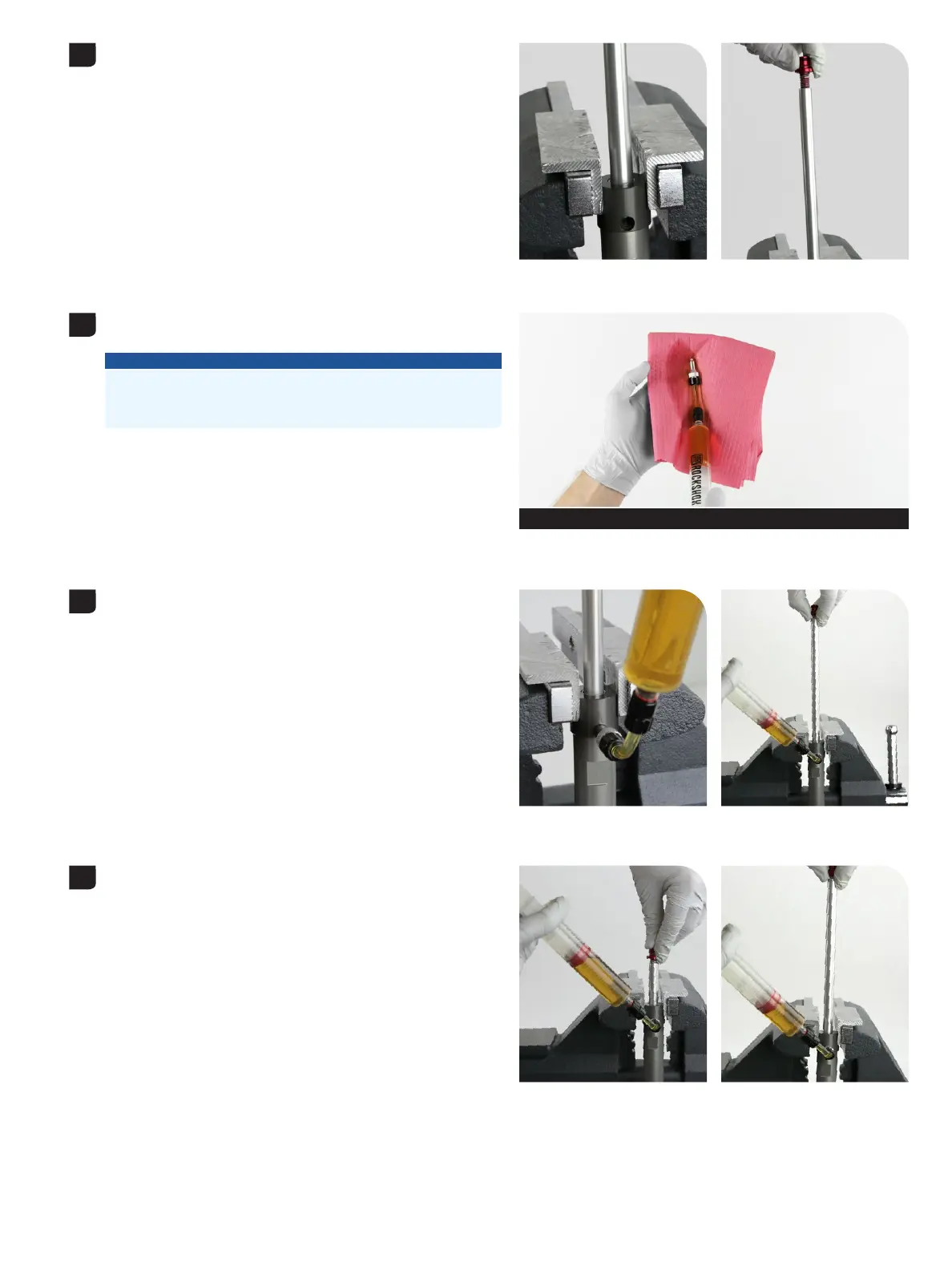 as the syringe fills with oil. Pull up slowly on the rebound damper shaft. as the syringe fills with oil. Pull up slowly on the rebound damper shaft.