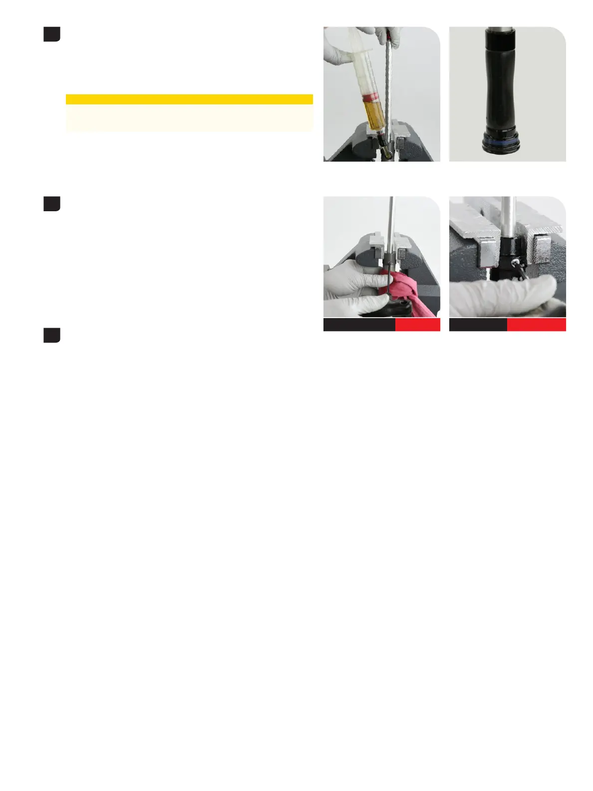 Fully extend the rebound damper shaft. Push the syringe handle Fully extend the rebound damper shaft. Push the syringe handle