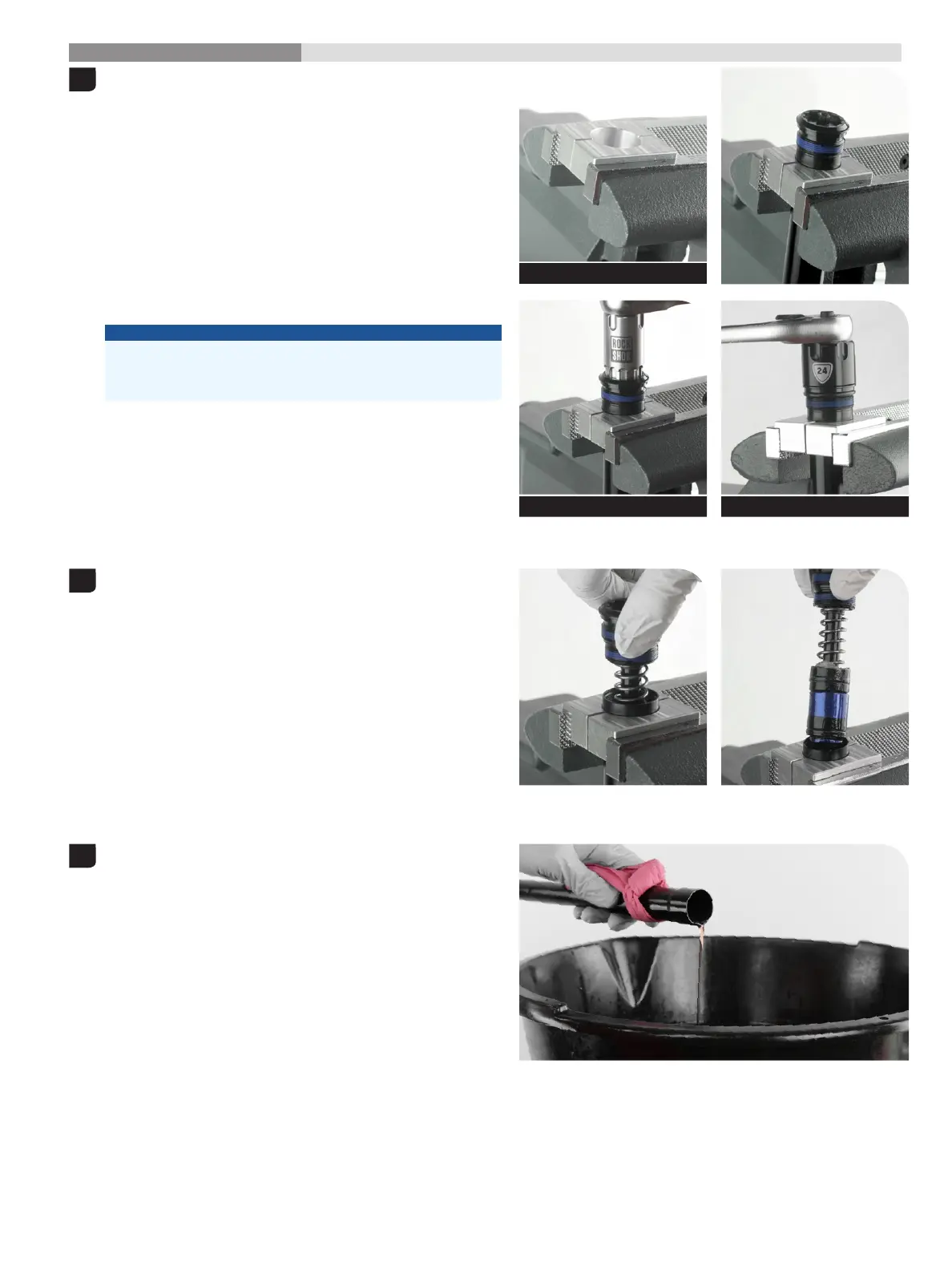 Clamp the Charger Damper RL cartridge tube into a vise with Charger Clamp the Charger Damper RL cartridge tube into a vise with Charger