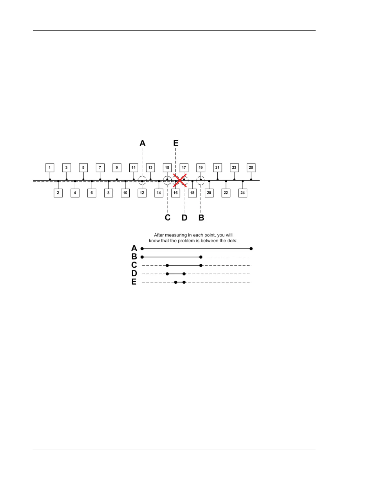 A binary search can help you locate a problem on the two-wire in a structured manner. The concept of a