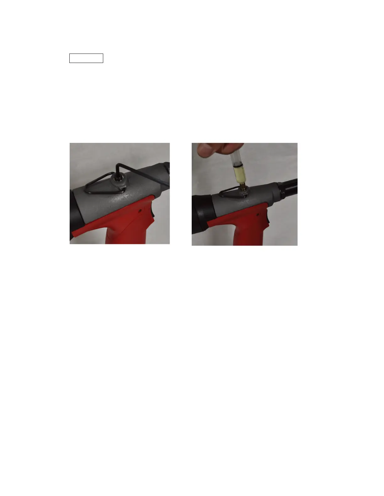 in the oil fill screw hole. Inject all of the oil in the syringe into the tool, adequate oil