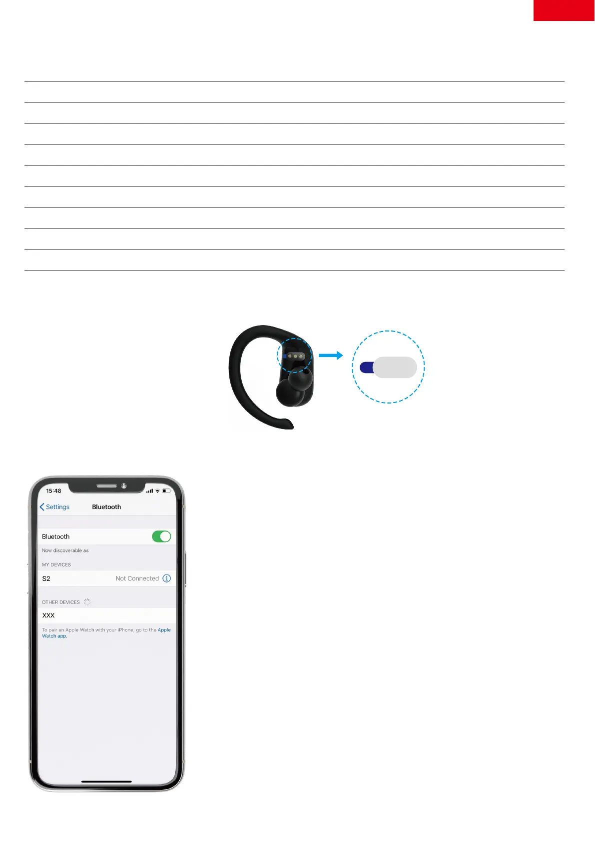 a voice prompt of “pairing” from earbuds,which indicates
