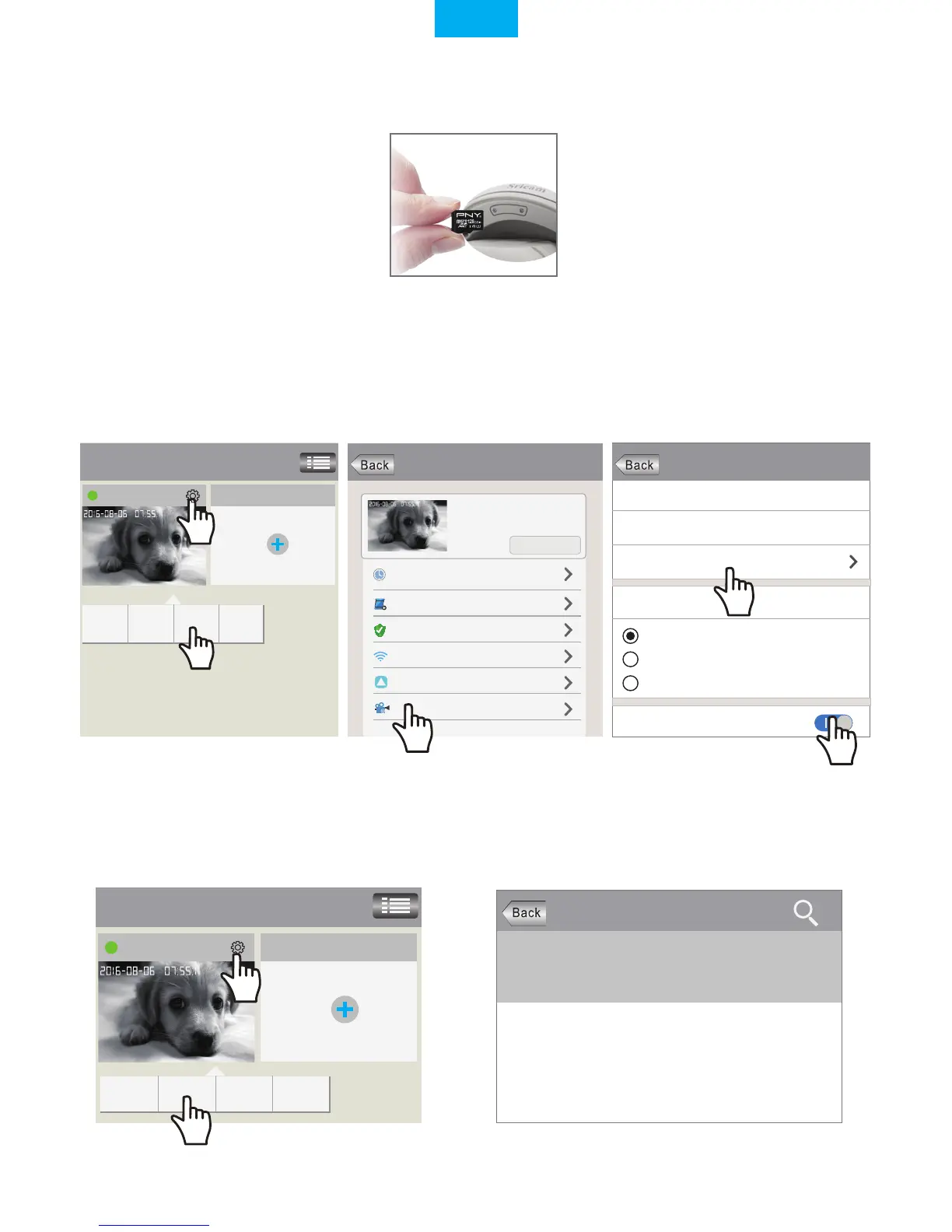 Log in “Sricam” App and follow the steps: Setting_>Playback